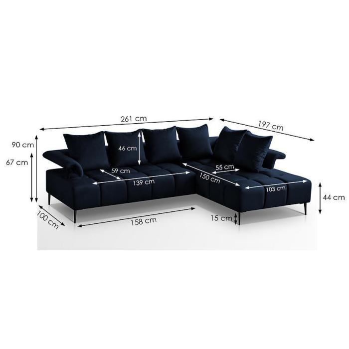 Narożnik Vanessa został pokryty tkaniną. W siedzisku zastosowano sprężynę falistą, która dostosowuje się do ciężaru i kształtu ciała, zapewniając tym samym wysoki komfort siedzenia. Ten niepowtarzalny mebel wypoczynkowy stworzono z myślą o funkcjonalności i eleganckim wyglądzie. Narożnik dostępny w wersji prawostronnej i lewostronnej.