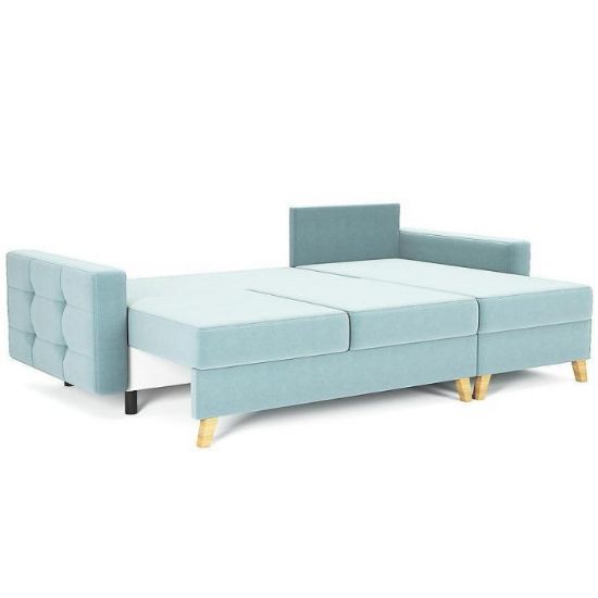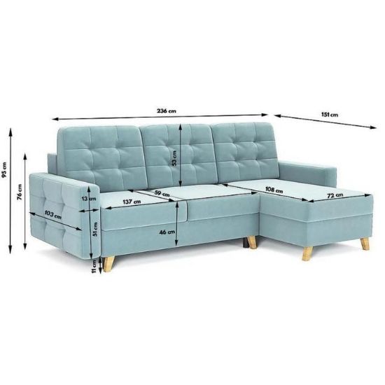 Sofa narożna Vegas to najbardziej praktyczny mebel, który będzie pasował do małego salonu, ale znajdzie swoje miejsce również w innym pomieszczeniu. Nowoczesne narożniki rozkładane to doskonały wybór na długie lata to szczególnie ważne i świetne rozwiązanie. Powierzchnia wynosi 146x206cm. Vegas posiada jeden pojemnik na pościel, a system rozkładania typu DL to szybki, prosty i wygodny sposób rozkładania.