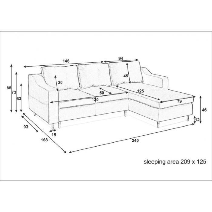 Sofa narożna Vero to najbardziej praktyczny mebel, który będzie pasował do salonu, ale znajdzie swoje miejsce również w innym pomieszczeniu. Nowoczesne narożniki rozkładane to doskonały wybór na długie lata. Funkcja spania to szczególnie ważne i świetne rozwiązanie, które zapewni miejsce snu w komfortowych warunkach. Powierzchnia spania wynosi 125x209cm. Vero posiada jeden pojemnik na pościel, a system rozkładania typu DL to szybki, prosty i wygodny sposób rozkładania.