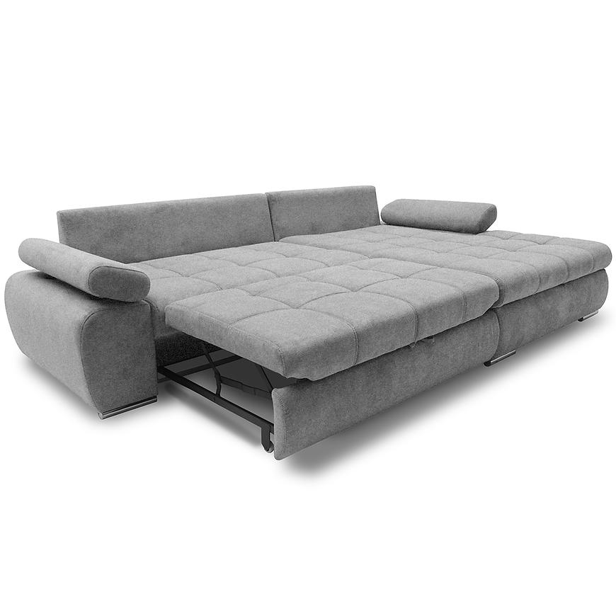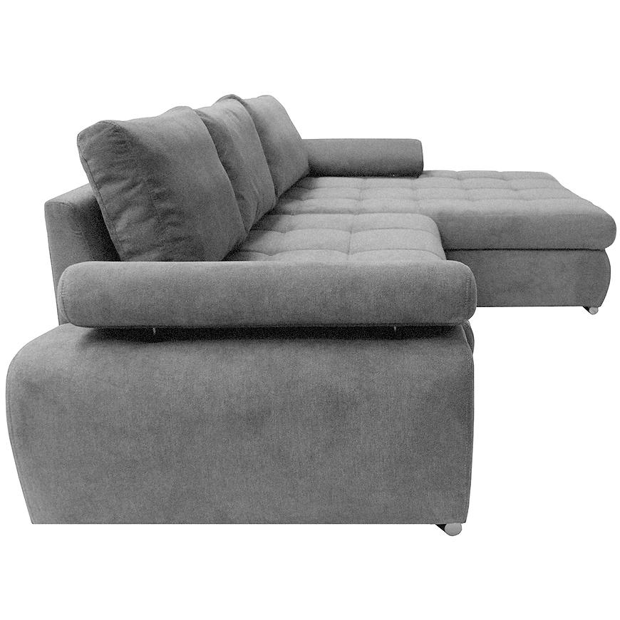 Narożnik Vienna P Aston 17 to duży narożnik w kształcie litery L o wymiarach 297x174x88 cm z funkcją spania 230x160 cm. Posiada pojemnik na pościel oraz mechanizm rozkładania delfin. Siedzisko wypełnione sprężyną falistą i pianką PU, tapicerka wykonana z tkaniny w kolorze szarym. Narożnik wyposażono w regulowane podłokietniki i nowoczesny design, oferując komfort i funkcjonalność do przestronnych wnętrz.