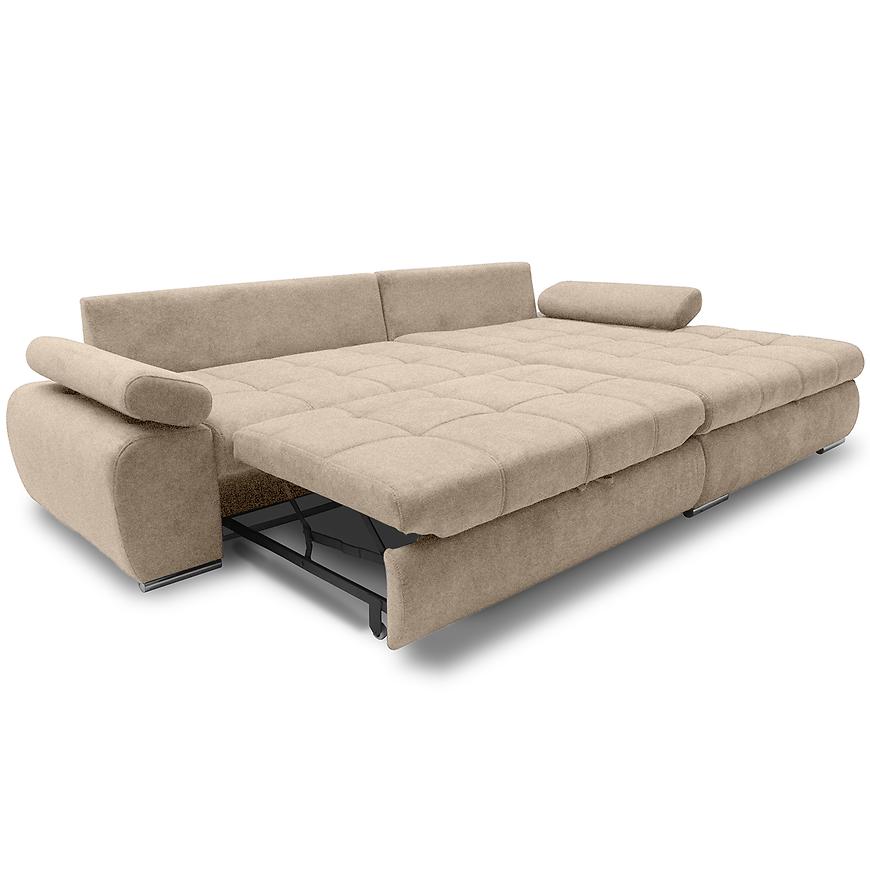 Dodatkowo mebel został wyposażony w pojemnik na pościel, co pozwala na wygodne przechowywanie tekstyliów, oraz regulowane podłokietniki, które można dopasować do indywidualnych potrzeb użytkowników. Vienna łączy w sobie styl, funkcjonalność i komfort, stając się idealnym wyborem dla każdego salonu.