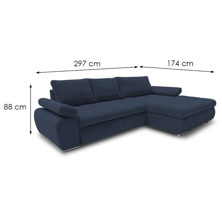 Narożnik Vienna to elegancki i funkcjonalny mebel w kształcie litery L, który doskonale sprawdzi się w nowoczesnym salonie. Tapicerka wykonana z wysokiej jakości tkaniny zapewnia komfort użytkowania na co dzień, a wypełnienie ze sprężyny falistej połączonej z pianką PU gwarantuje wygodę i odpowiednie podparcie. Narożnik Vienna posiada funkcję spania okazjonalnego z powierzchnią spania o wymiarach 160x230 cm, którą łatwo rozłożyć dzięki mechanizmowi typu delfin.
