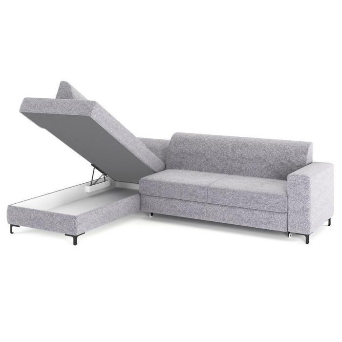 Sofa narożna Vocal to doskonały wybór, który zapewni wysoki komfort użytkowania. Funkcja spania to świetne rozwiązanie, które będzie szczególnie ważne dla posiadaczy małego salonu. Powierzchnia spania wynosi 122x195cm i zapewni odpoczynek w komfortowych warunkach. Kanapa narożna Vocal posiada jeden pojemnik na pościel, a system rozkładania typu wózek, to szybki, prosty i wygodny sposób rozkładania.