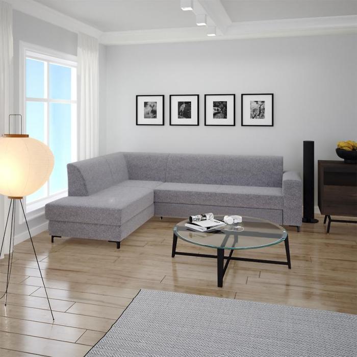 Narożniki z funkcją spania to doskonałe meble wypoczynkowe. Większe narożniki to propozycja do przestrzennych miejsc. Duży narożnik sprawdzi się w domach, gdzie występują wieloosobowe rodziny. Mały narożnik wpasuje się do mniejszych wnętrz. Nowoczesny narożnik szary z kolekcji Vocal to najbardziej praktyczny mebel, który może znaleźć się w każdym domu. Rozmiar mebla sprawia, że jest to odpowiedni model do pokoju dziennego lub salonu.