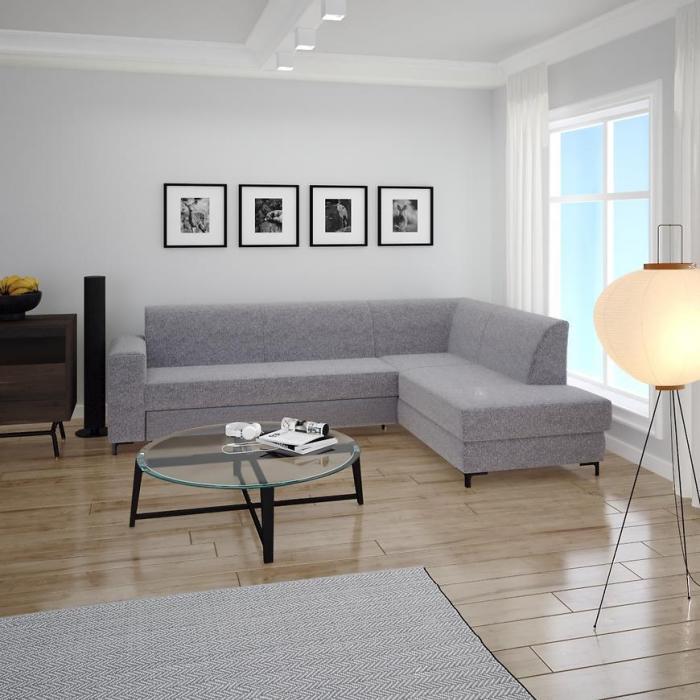 Narożniki z funkcją spania to doskonałe meble wypoczynkowe. Większe narożniki to propozycja do przestrzennych miejsc. Duży narożnik sprawdzi się w domach, gdzie występują wieloosobowe rodziny. Mały narożnik wpasuje się do mniejszych wnętrz. Nowoczesny narożnik szary z kolekcji Vocal to najbardziej praktyczny mebel, który może znaleźć się w każdym domu. Rozmiar mebla sprawia, że jest to odpowiedni model do pokoju dziennego lub salonu.