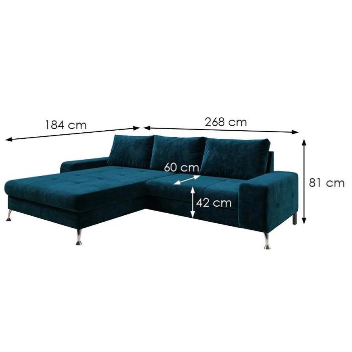 Nowoczesny narożnik rozkładany Wenus w kształcie litery L to najbardziej praktyczny mebel. Jest to odpowiedni model zarówno do małego salonu, ale wpasuje się również w pokój dzienny.