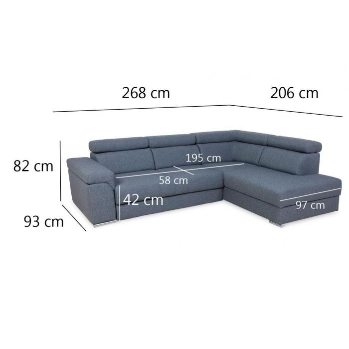 Sofa narożna Wersal w kolorze ciemny popiel z funkcją spania, mechanizmem ułatwiającym rozkładanie oraz pojemnikiem na pościel. Model dostępny w opcji prawej lub lewej. W konstrukcji narożnika użyto pianek wysokoelastycznych T35, wózek tworzący powierzchnię spania posiada sprężyny faliste. Powierzchnia spania o wymiarach 125x195 cm. Nóżki metalowe chromowane. Mebel pakowany jest w dwie paczki o wymiarach: 1/2. 101x83x173; 2/2. 101x85x205 cm.
