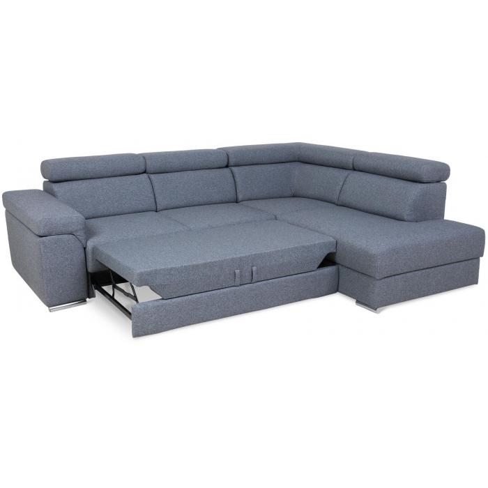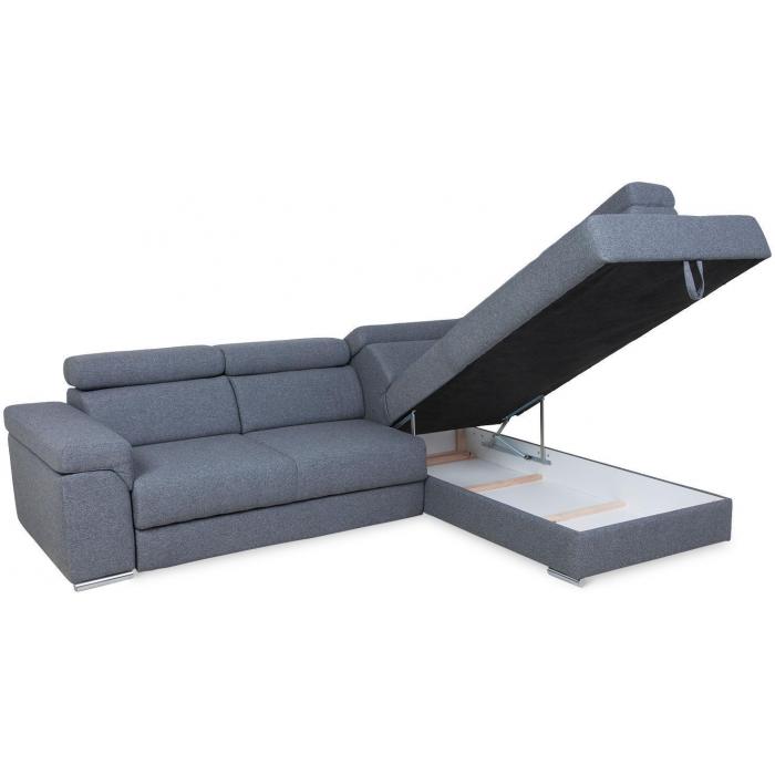 Kanapa narożna Wersal posiada jeden pojemnik na pościel, a system rozkładania typu wózek, to szybki, prosty i wygodny sposób rozkładania.