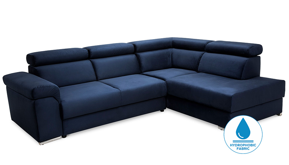 Narożnik tapicerowany w tkaninie Monolith - jest to tkanina hydrofobowa. W siedzisku narożnika zastosowano sprężynę falistą oraz piankę sandwich typu HR i typu T. Natomiast oparcie posiada piankę oraz pasy tapicerskie. Narożnik z funkcją spania Wersal jest najbardziej praktyczny i komfortowy, posiada regulowane zagłówki.