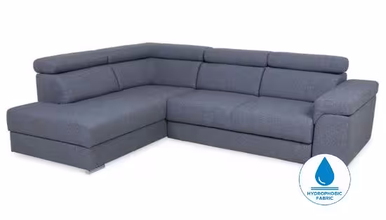 Narożnik tapicerowany w tkaninie Solid 99 - jest to tkanina water repellent, czyli o właściwościach utrudniających wchłanianie rozlanych płynów. W siedzisku narożnika zastosowano sprężynę falistą oraz piankę sandwich typu HR i typu T. Natomiast oparcie posiada piankę oraz pasy tapicerskie. Narożnik z funkcją spania Wersal jest najbardziej praktyczny i komfortowy, posiada regulowane zagłówki.