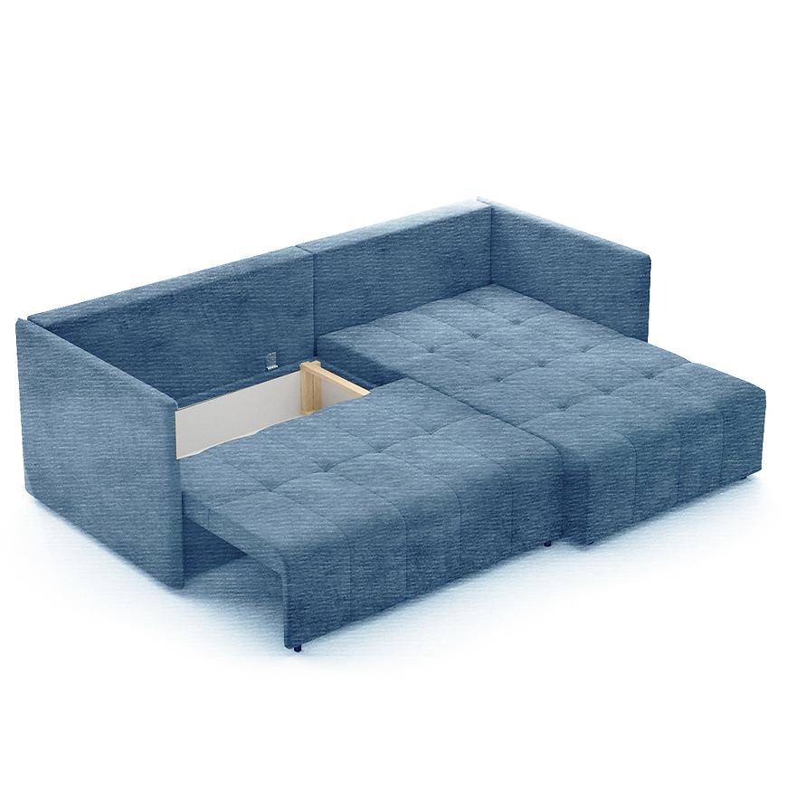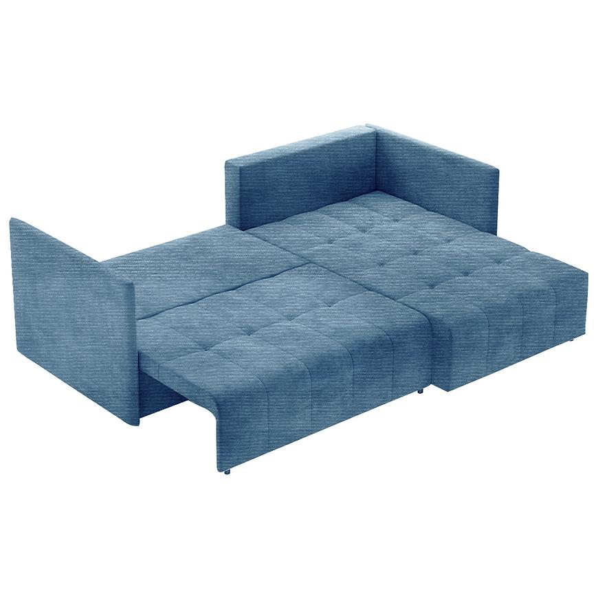 Narożnik York Astra 14 to stylowy i praktyczny mebel do salonu, który zachwyca swoim niebieskim kolorem, wprowadzającym do wnętrza świeżość i spokój. Klasyczny design w kształcie litery L o wymiarach 245 × 182 cm zapewnia komfortową przestrzeń do codziennego wypoczynku. Tapicerka wykonana z miękkiej tkaniny oraz wypełnienie siedziska sprężyną falistą gwarantują wygodę i trwałość użytkowania. Narożnik wyposażony jest w funkcję spania z mechanizmem rozkładania DL, umożliwiającą łatwe przekształcenie mebla w wygodne łóżko o powierzchni 230 × 149 cm, idealne na nocne pobyty gości. Praktyczny pojemnik na pościel pozwala na przechowywanie kołder i poduszek, co pomaga utrzymać porządek w salonie. Uniwersalna orientacja narożnika pozwala na ustawienie go zarówno z lewej, jak i prawej strony pomieszczenia. Czarna kolorystyka nóg oraz dołączone poduszki dopełniają całości, tworząc funkcjonalny i estetyczny element wyposażenia salonu. York Astra 14 to idealne połączenie klasycznego stylu z nowoczesną wygodą.