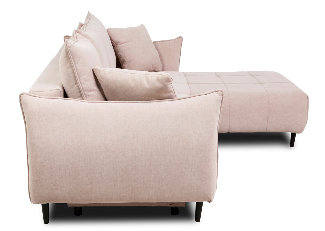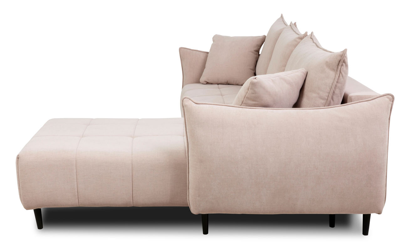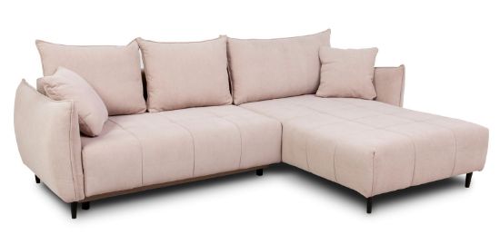 Duży narożnik Amadeo to elegancja, wygoda i funkcjonalność. Model uniwersalny wykonany w tkaninie Moly 11 w kolorze beżowym. Narożnik rozkładany to mebel idealny dla rodzin, które cenią sobie wspólny wypoczynek na sofie. Nowoczesny narożnik z funkcją spania wyposażony w sprężyny faliste oraz wygodne oparcie zapewni wysoki komfort nawet najbardziej wymagającym miłośnikom wielogodzinnych drzemek. Siedzisko mebla posiada ozdobne przeszycia i pikowania. Kanapa narożna z pojemnikiem oraz automatem wspomagającym rozkładanie to idealne rozwiązanie, które świetnie sprawdzi się w każdym domu. Sposób rozkładania to popularny DL. Po rozłożeniu powierzchnia spania wynosi 133x247 cm. W narożniku zastosowano nóżki drewniane w kolorze czarnym. Narożnik tapicerowany możesz ustawić w salonie lub innym pomieszczeniu. Meble wypoczynkowe wyposażone w funkcję spania to doskonały wybór na długie lata.