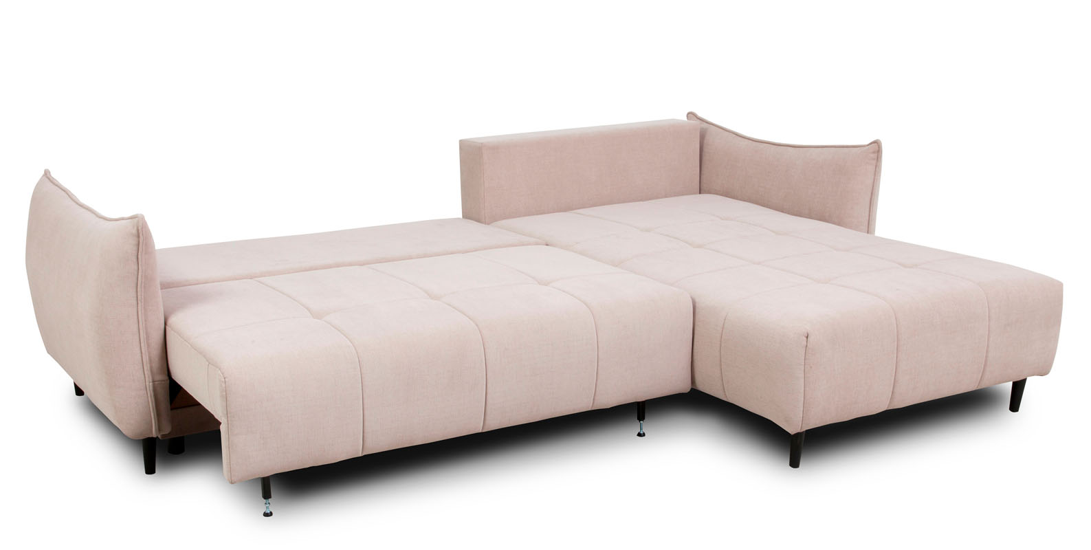 Sposób rozkładania Delfin pomaga szybko i bezproblemowo przekształcić kanapę w przestronne łóżko. Rozkładanie typu Delfin jest najczęściej spotykane w narożnikach - spod siedziska wysuwamy szufladę, a następnie podciągamy leżący element uzupełniający powierzchnię spania. Po rozłożeniu powierzchnia spania to 126x211cm, a pościel można schować do pojemnika umieszczonego pod siedziskiem zapewniając ład i porządek w pomieszczeniu.