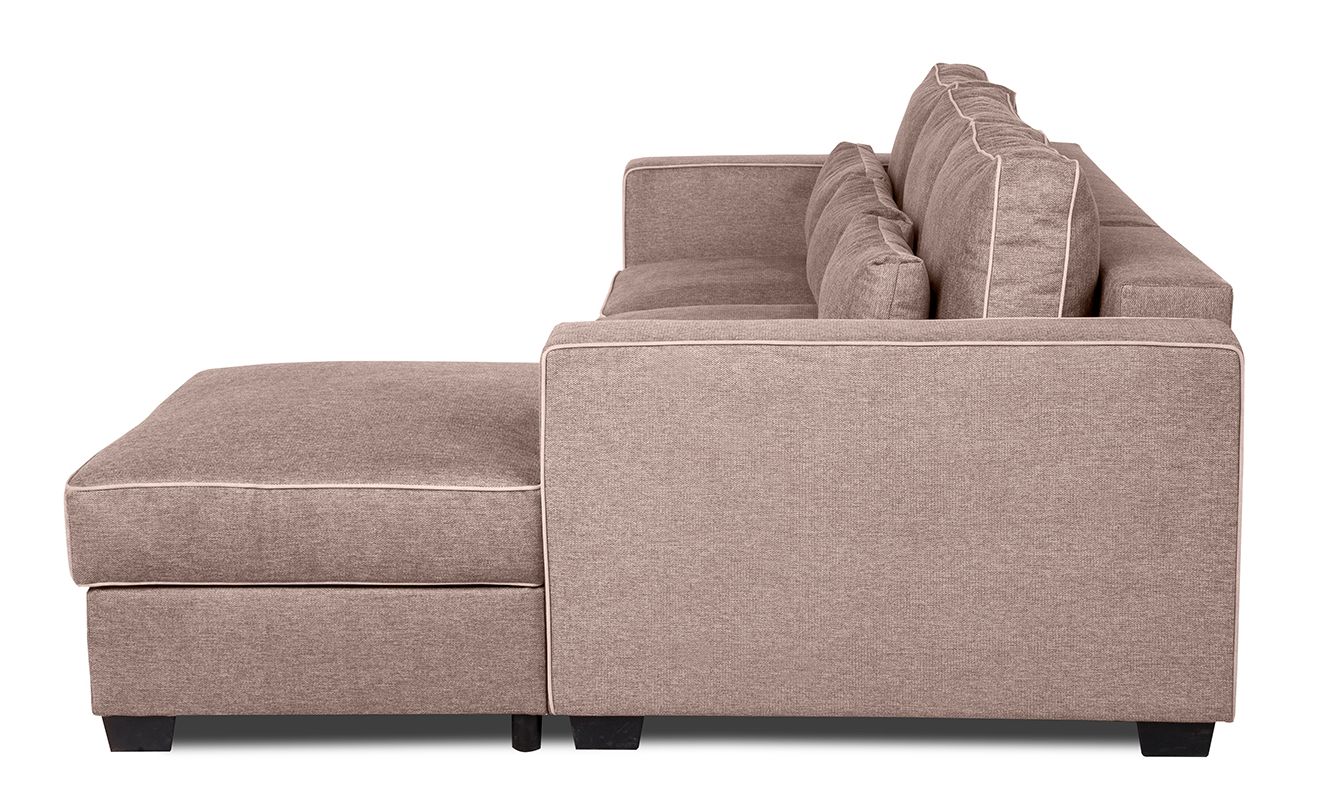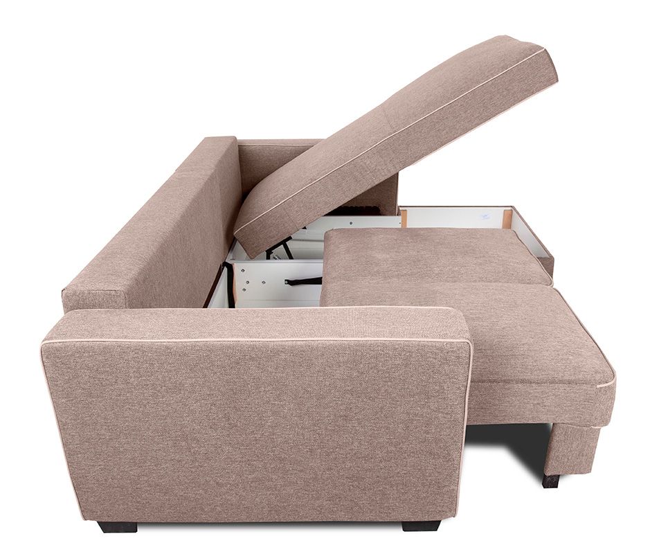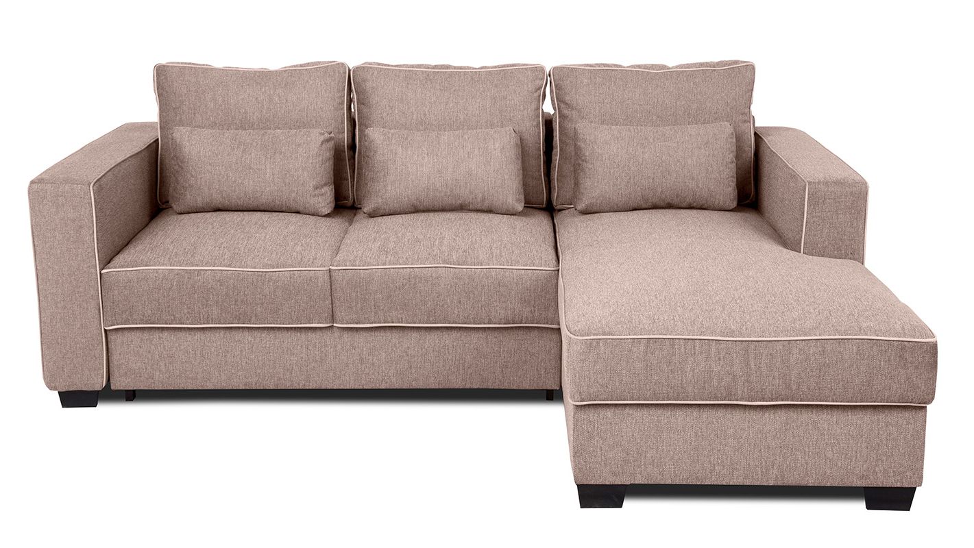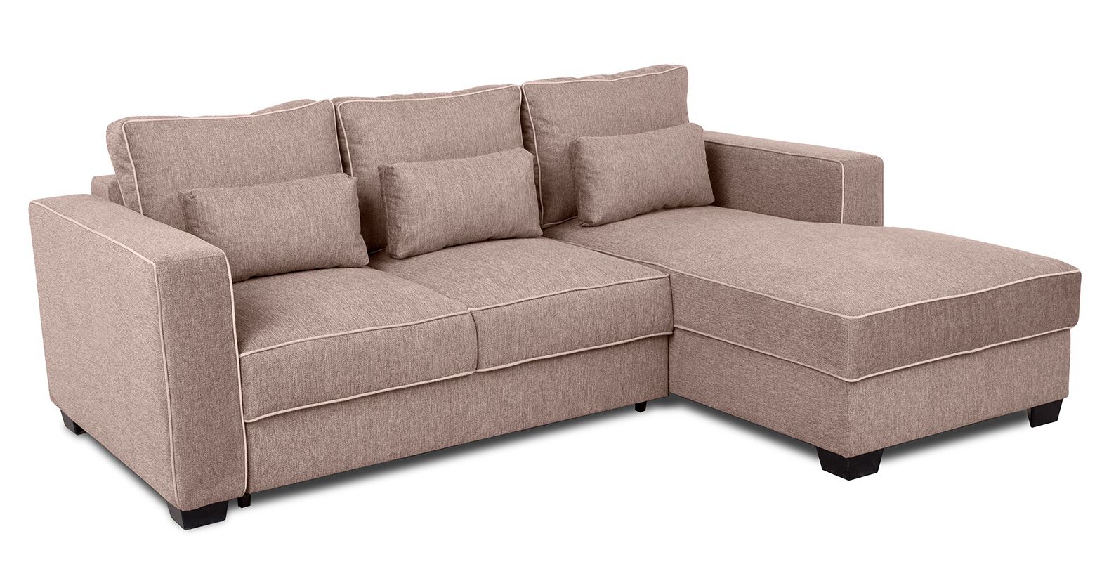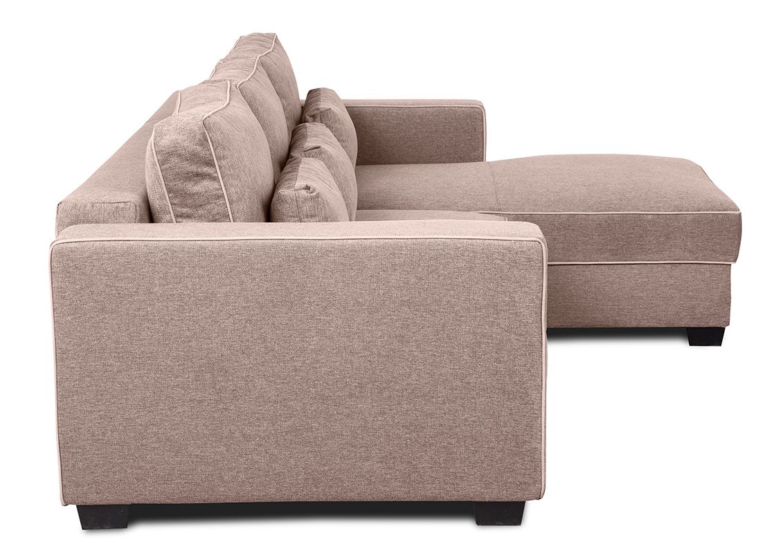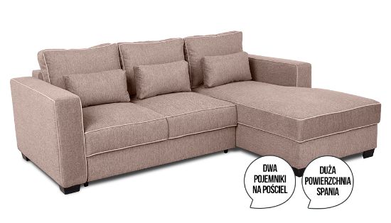 Narożnik rozkładany Ares to mebel z dwoma pojemnikami na pościel. Narożnik posiada trzy duże poduszki oparciowe oraz trzy mniejsze. W siedzisku jak również w oparciu zastosowano podwójną sprężynę (bonell oraz falista). Narożnik w dosteny jest konfiguracji prawy, lewy. Sposób rozkładania DL, po rozłożeniu otrzymujemy dużą powierzchnię spania o wymiarach 143x200 cm. Siedzisko narożnika znajduje się na wysokości 50 cm od podłogi. Narożnik tapicerowany tkaniną Brego w kolorze beżowym. Brego to tkanina z charakterystycznym wykończeniem tworzącym efekt trój wymiarowości i melanżu, jest odporna na ścieranie oraz na mechacenie i powstawanie "pilingu". Jako element dekoracyjny zastosowano ozdobne lamówki na siedzisku oraz bokach narożnika. Narożnik posiada drewniane nóżki w kolorze czarnym.