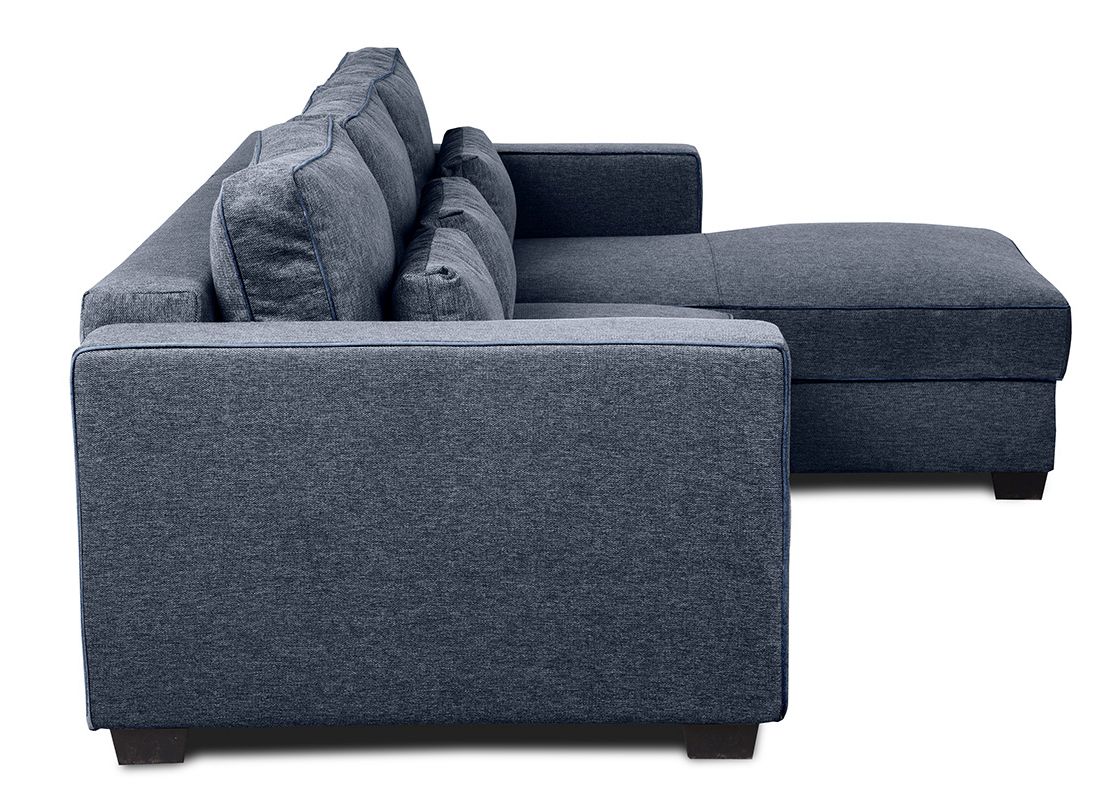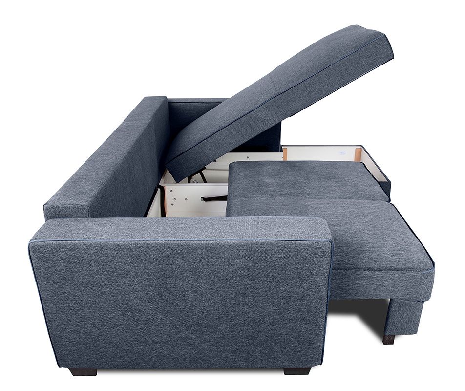 Narożnik rozkładany Ares to mebel z dwoma pojemnikami na pościel. Narożnik posiada trzy duże poduszki oparciowe oraz trzy mniejsze. W siedzisku jak również w oparciu zastosowano podwójną sprężynę (bonell oraz falista). Narożnik w dosteny jest konfiguracji prawy, lewy. Sposób rozkładania DL, po rozłożeniu otrzymujemy dużą powierzchnię spania o wymiarach 143x200 cm. Siedzisko narożnika znajduje się na wysokości 50 cm od podłogi. Narożnik tapicerowany tkaniną Brego w kolorze popielatym. Brego to tkanina z charakterystycznym wykończeniem tworzącym efekt trój wymiarowości i melanżu, jest odporna na ścieranie oraz na mechacenie i powstawanie "pilingu". Jako element dekoracyjny zastosowano ozdobne lamówki na siedzisku oraz bokach narożnika. Narożnik posiada drewniane nóżki w kolorze czarnym.
