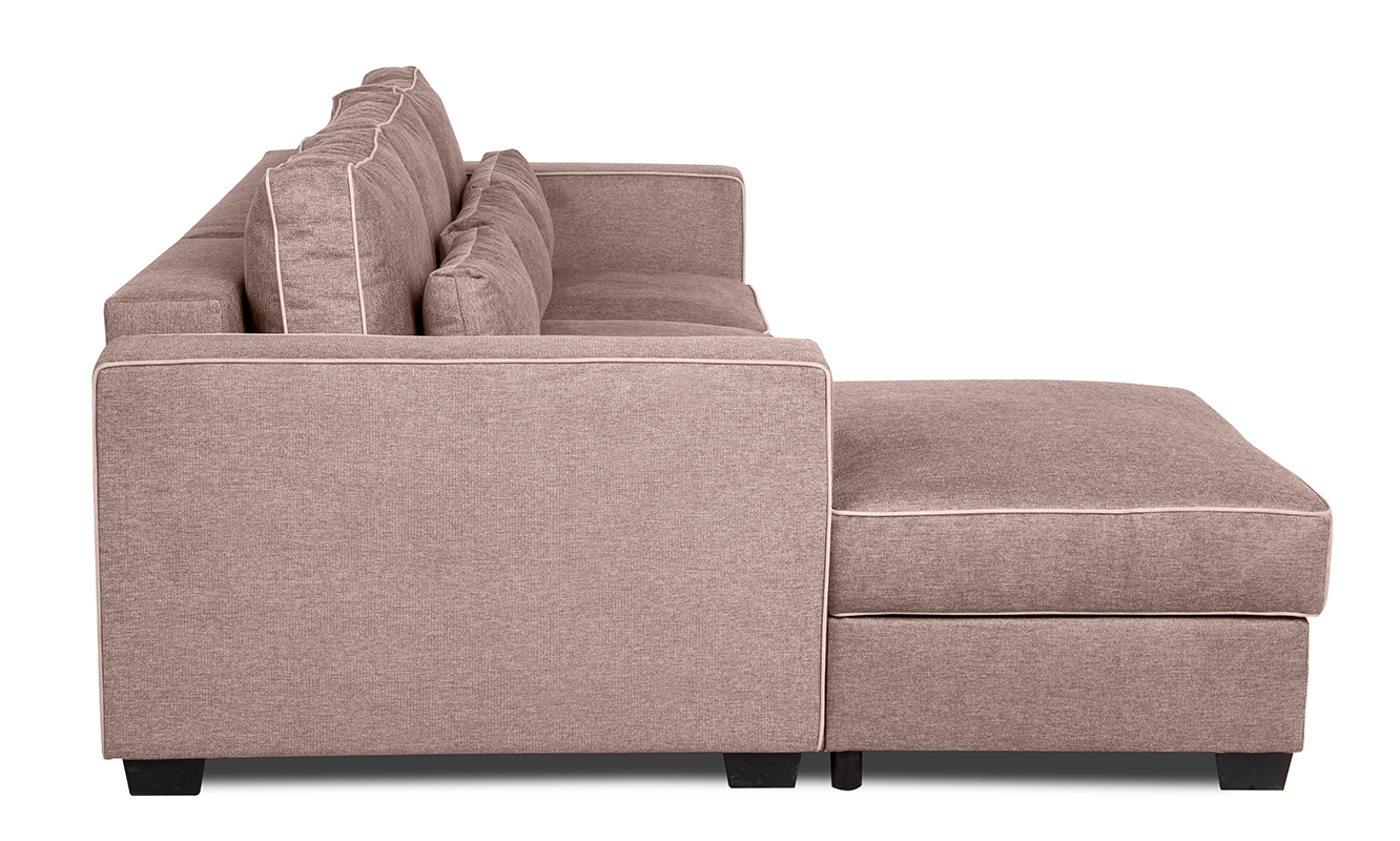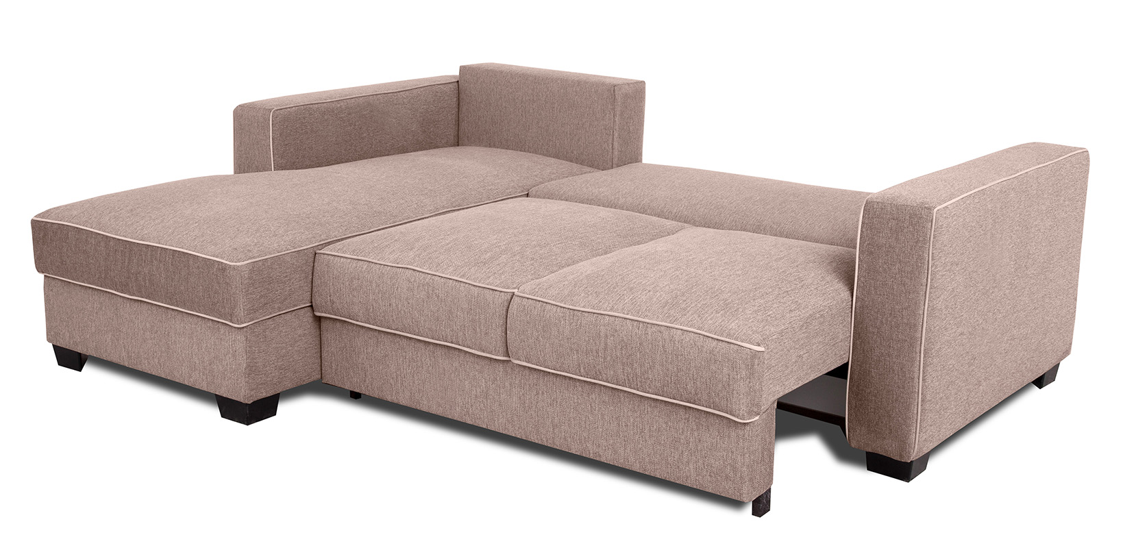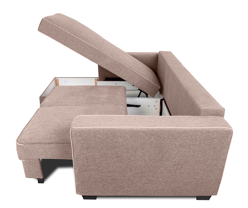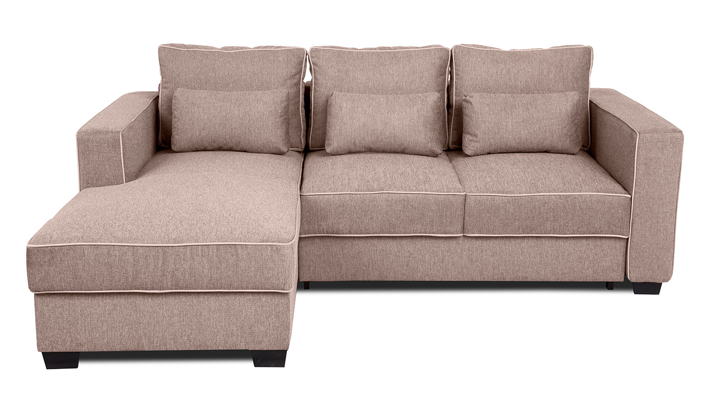 Narożnik rozkładany Ares to mebel z dwoma pojemnikami na pościel. Narożnik posiada trzy duże poduszki oparciowe oraz trzy mniejsze. W siedzisku jak również w oparciu zastosowano podwójną sprężynę (bonell oraz falista). Narożnik w dosteny jest konfiguracji prawy, lewy. Sposób rozkładania DL, po rozłożeniu otrzymujemy dużą powierzchnię spania o wymiarach 143x200 cm. Siedzisko narożnika znajduje się na wysokości 50 cm od podłogi. Narożnik tapicerowany tkaniną Brego w kolorze beżowym. Brego to tkanina z charakterystycznym wykończeniem tworzącym efekt trój wymiarowości i melanżu, jest odporna na ścieranie oraz na mechacenie i powstawanie "pilingu". Jako element dekoracyjny zastosowano ozdobne lamówki na siedzisku oraz bokach narożnika. Narożnik posiada drewniane nóżki w kolorze czarnym.