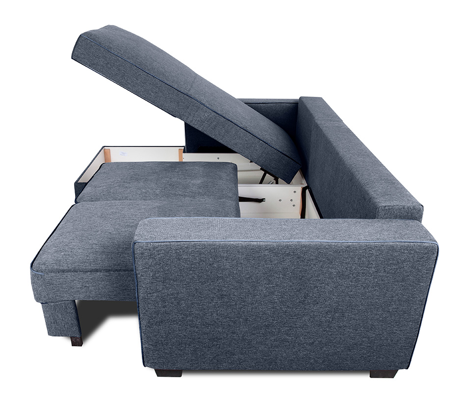 Narożnik rozkładany Ares to mebel z dwoma pojemnikami na pościel. Narożnik posiada trzy duże poduszki oparciowe oraz trzy mniejsze. W siedzisku jak również w oparciu zastosowano podwójną sprężynę (bonell oraz falista). Narożnik w dosteny jest konfiguracji prawy, lewy. Sposób rozkładania DL, po rozłożeniu otrzymujemy dużą powierzchnię spania o wymiarach 143x200 cm. Siedzisko narożnika znajduje się na wysokości 50 cm od podłogi. Narożnik tapicerowany tkaniną Brego w kolorze popielatym. Brego to tkanina z charakterystycznym wykończeniem tworzącym efekt trój wymiarowości i melanżu, jest odporna na ścieranie oraz na mechacenie i powstawanie "pilingu". Jako element dekoracyjny zastosowano ozdobne lamówki na siedzisku oraz bokach narożnika. Narożnik posiada drewniane nóżki w kolorze czarnym.