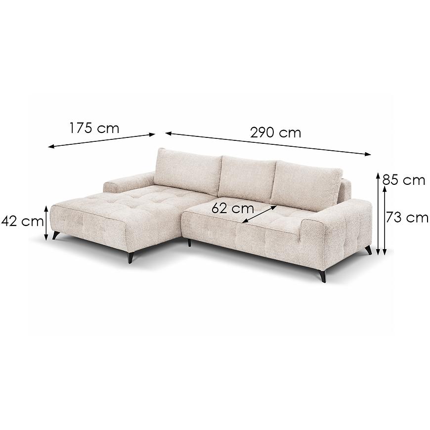 Narożnik z funkcją spania Atena LC-2R Astra 3 (lewostronny) to stylowy i praktyczny mebel, idealny do nowoczesnych oraz skandynawskich wnętrz. Jego uniwersalna, beżowa tkanina wnosi do pomieszczenia przytulność i lekkość, tworząc harmonijne tło dla codziennego wypoczynku. Narożnik posiada kompaktowe wymiary – szerokość 290 cm i głębokość 175 cm – dzięki czemu sprawdzi się zarówno w przestronnych salonach, jak i mniejszych mieszkaniach.