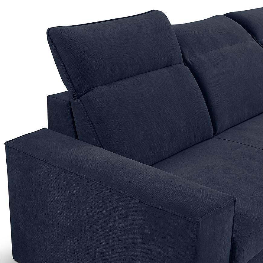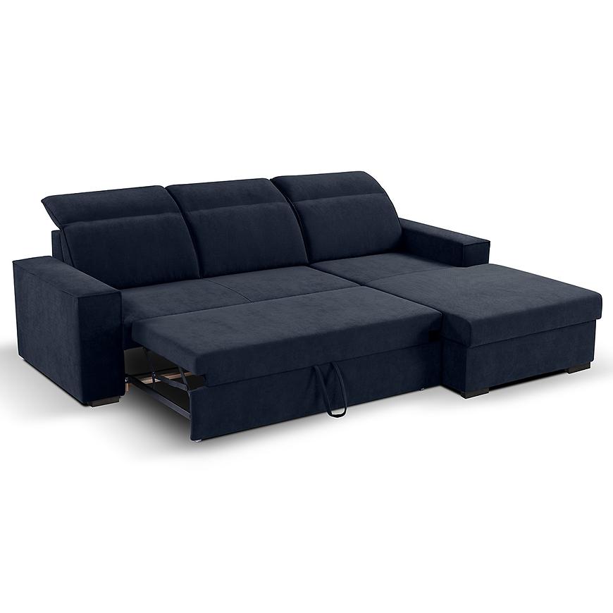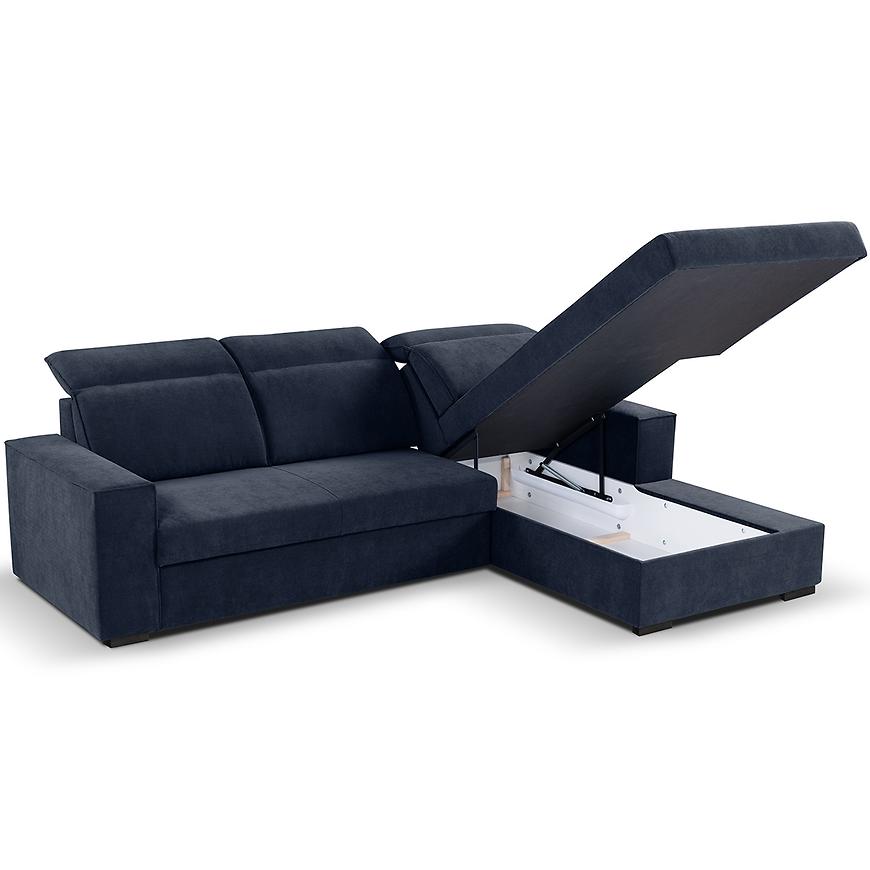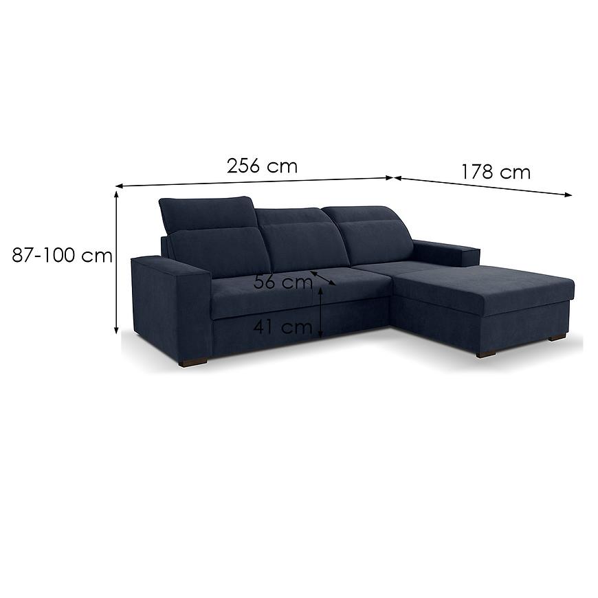 Narożnik Bali posiada również funkcję spania, którą można aktywować w prosty sposób dzięki "sposobowi rozkładania delfin". Po rozłożeniu to okazjonalne miejsce do spania. Dodatkowym atutem jest schowek na pościel, który umożliwia przechowywanie pościeli lub innych dodatków w sposób dyskretny i oszczędzający miejsce. Jeden pojemnik na pościel dodatkowo ułatwia organizację przestrzeni i przechowywanie niezbędnych rzeczy. Regulowany zagłówek to kolejny element, który podnosi komfort użytkowania tego narożnika. Możesz dostosować go do swoich potrzeb, aby cieszyć się idealnym wsparciem podczas czytania, oglądania filmów czy relaksu. Narożnik Bali wspierany jest solidnymi nogami w kolorze ciemnego orzecha, które nadają mu wyjątkowej elegancji i stabilności.