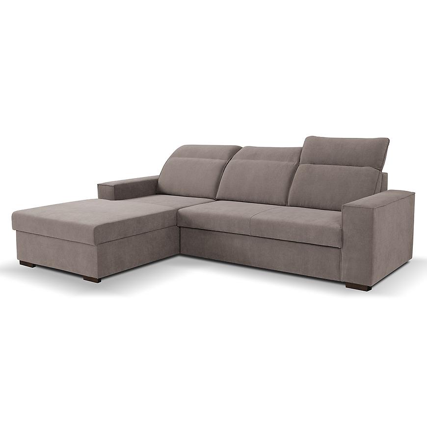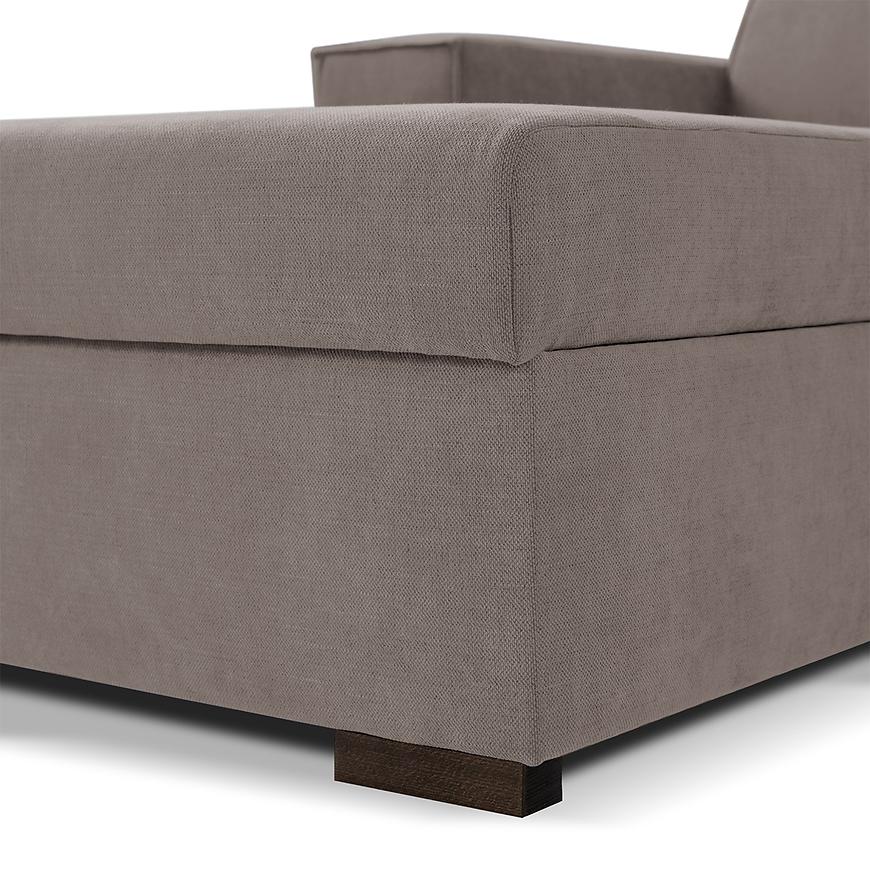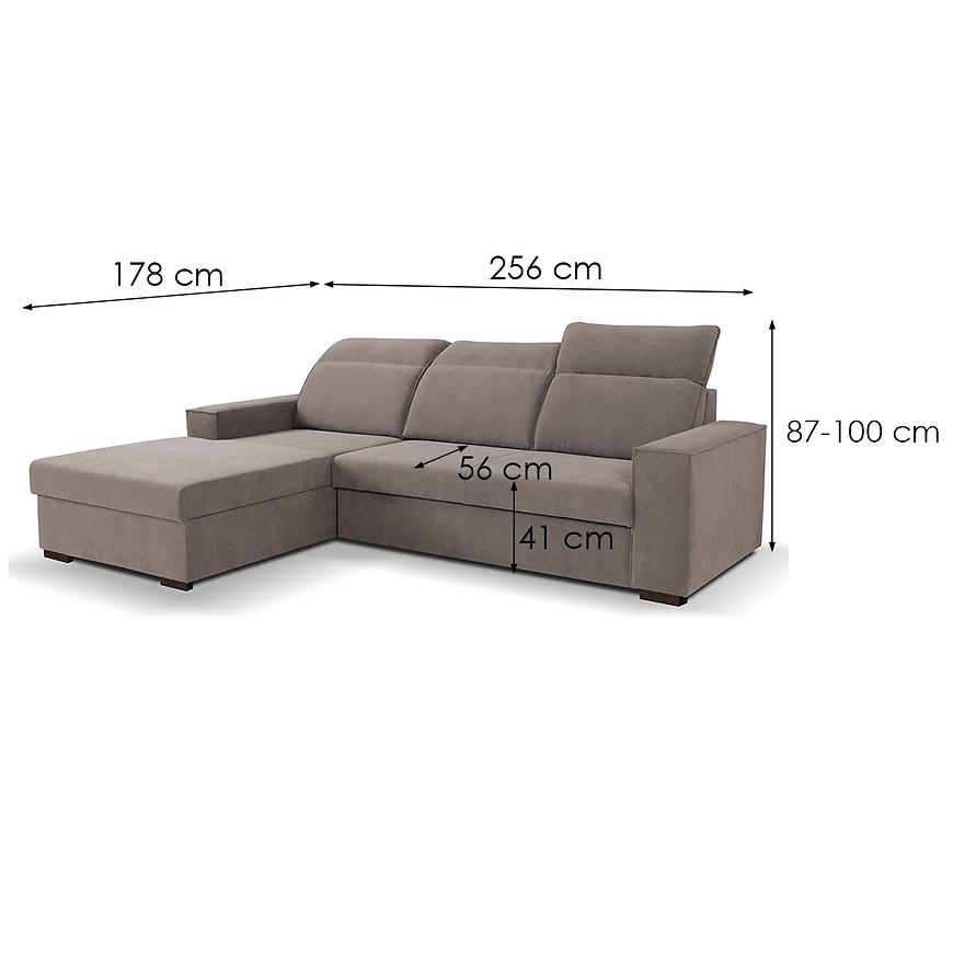 Narożnik Bali posiada również funkcję spania, którą można aktywować w prosty sposób dzięki "sposobowi rozkładania delfin". Po rozłożeniu to okazjonalne miejsce do spania. Dodatkowym atutem jest schowek na pościel, który umożliwia przechowywanie pościeli lub innych dodatków w sposób dyskretny i oszczędzający miejsce. Jeden pojemnik na pościel dodatkowo ułatwia organizację przestrzeni i przechowywanie niezbędnych rzeczy. Regulowany zagłówek to kolejny element, który podnosi komfort użytkowania tego narożnika. Możesz dostosować go do swoich potrzeb, aby cieszyć się idealnym wsparciem podczas czytania, oglądania filmów czy relaksu. Narożnik Bali wspierany jest solidnymi nogami w kolorze ciemnego orzecha, które nadają mu wyjątkowej elegancji i stabilności.