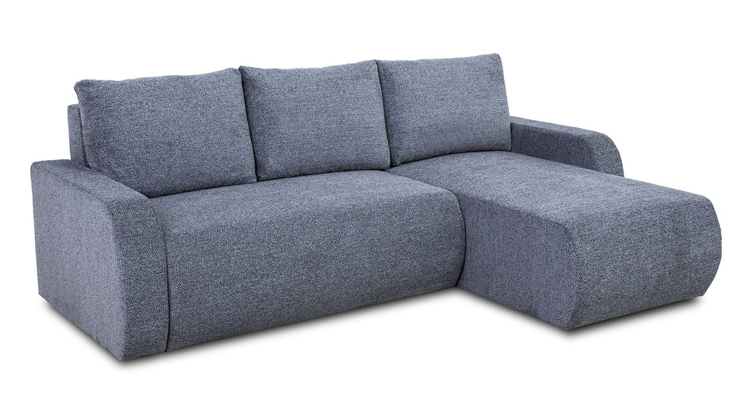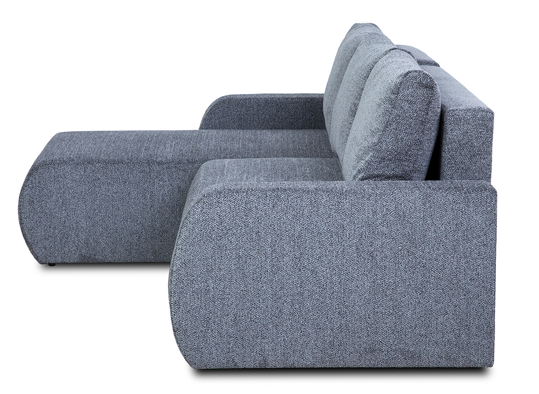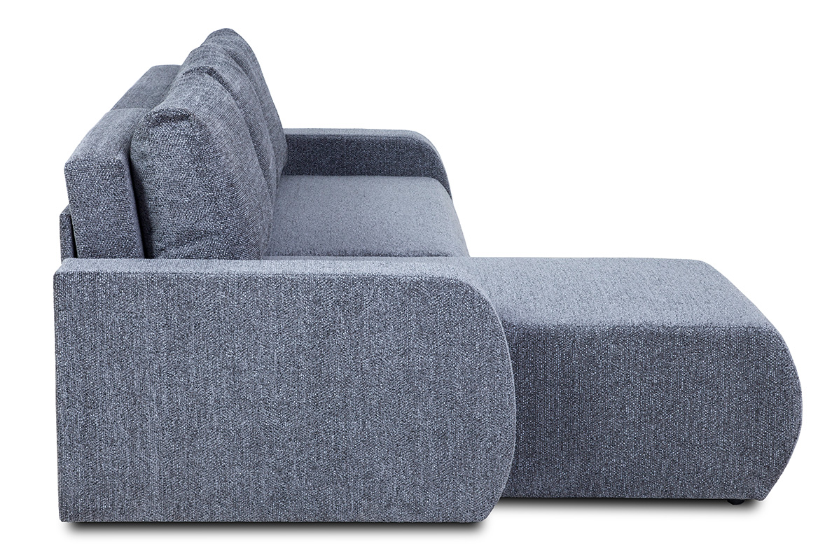 Narożnik został obity wysokiej jakości tkaniną Kate, która charakteryzuje się delikatną strukturą i melanżowym wykończeniem, nadając wnętrzu elegancki i nowoczesny wygląd. Dodatkowym atutem jest uniwersalność konstrukcji – narożnik można ustawić zarówno w wersji prawostronnej, jak i lewostronnej, dostosowując go do indywidualnych potrzeb.