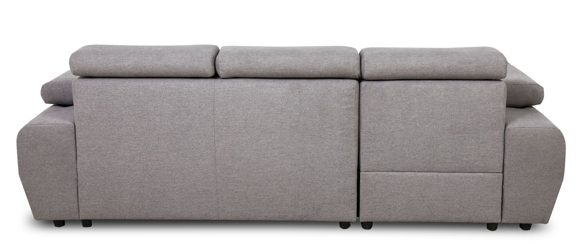 Narożnik Berg wyróżnia się trzema regulowanymi zagłówkami na oparciach oraz trzema regulowanymi zagłówkami na boczkach, co pozwala dostosować go do indywidualnych preferencji użytkowników. To innowacyjne rozwiązanie umożliwia zmianę kąta nachylenia zagłówków, dostosowując narożnik do własnych potrzeb, zarówno podczas siedzenia, jak i spania.