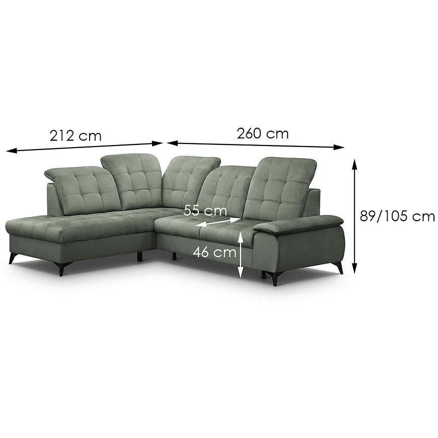 Narożnik z funkcją spania Betty to wyjątkowe połączenie stylu, wygody i funkcjonalności, doskonale pasujące do średnich rozmiarów salonów. Jego tapicerka wykonana jest z trwałej i łatwej w utrzymaniu czystości tkaniny hydrofobowej, co sprawia, że mebel jest odpychający wodę i łatwo zabezpieczony przed plamami.