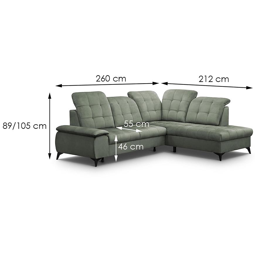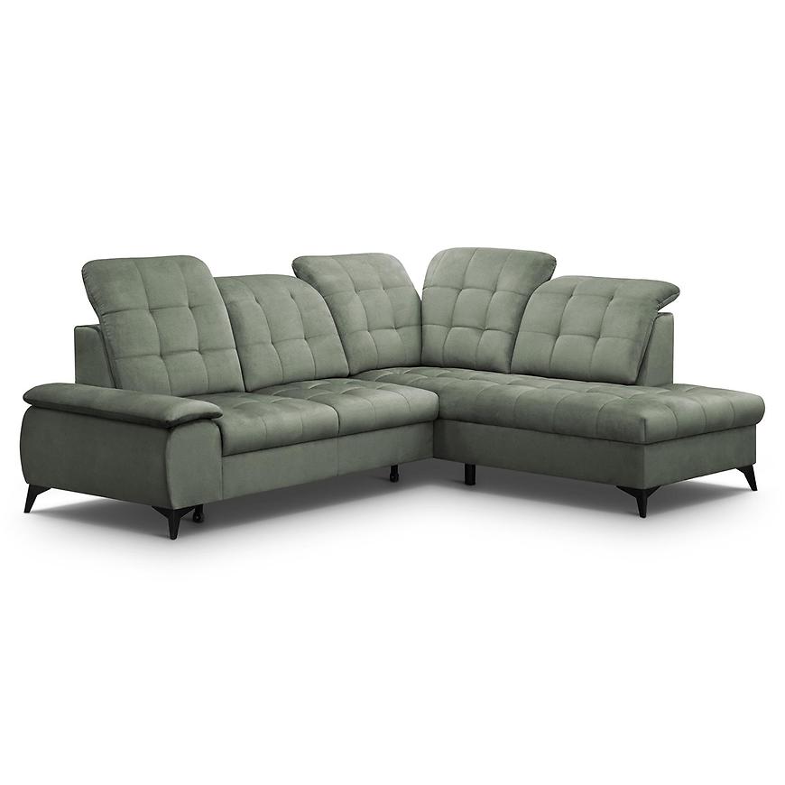 Narożnik z funkcją spania Betty to wyjątkowe połączenie stylu, wygody i funkcjonalności, doskonale pasujące do średnich rozmiarów salonów. Jego tapicerka wykonana jest z trwałej i łatwej w utrzymaniu czystości tkaniny hydrofobowej, co sprawia, że mebel jest odpychający wodę i łatwo zabezpieczony przed plamami.