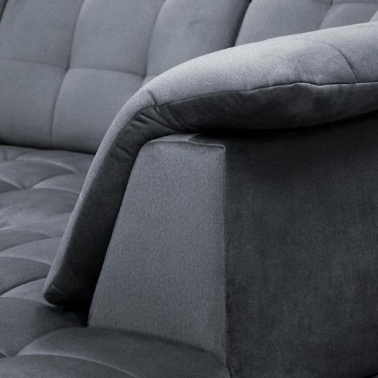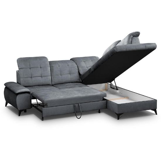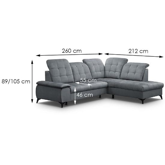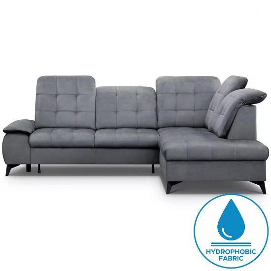 Narożnik z funkcją spania Betty to wyjątkowe połączenie stylu, wygody i funkcjonalności, doskonale pasujące do średnich rozmiarów salonów. Jego tapicerka wykonana jest z trwałej i łatwej w utrzymaniu czystości tkaniny hydrofobowej, co sprawia, że mebel jest odpychający wodę i łatwo zabezpieczony przed plamami.