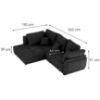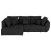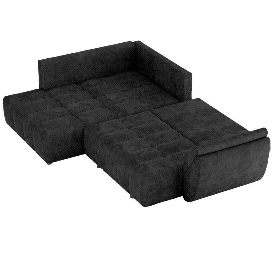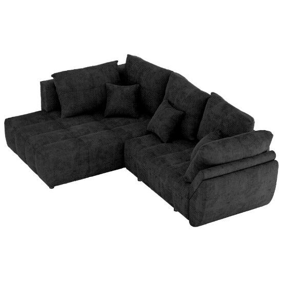 Czarne nóżki, które podtrzymują konstrukcję, nadają meblowi lekkości i elegancji, a jednocześnie zapewniają stabilność. W komplecie z narożnikiem znajdują się również poduszki, które podnoszą komfort i dodają całości wyrazistego, nowoczesnego charakteru.