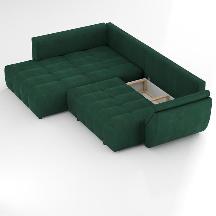 Narożnik Bono z funkcją spania został pokryty tkaniną hydrofobową. Prostotę i łatwość użytkowania gwarantuje automat ułatwiający rozkładanie i system rozkładania typu DL. Jest to szybki, prosty i wygodny sposób rozkładania. Jest jednym z najbardziej popularnych systemów rozkładania, który jest wykorzystywany w narożnikach. Po rozłożeniu to okazjonalne miejsce do spania o wymiarach 149x220 cm. Mebel posiada pojemnik, do którego można schować pościel, dodatkowe koce czy też poduszki. W siedzisku zastosowano sprężynę falistą, która dostosowuje się do ciężaru i kształtu ciała, zapewniając tym samym wysoki komfort siedzenia. Ten niepowtarzalny mebel wypoczynkowy stworzono z myślą o funkcjonalności i eleganckim wyglądzie. Narożnik dostępny w wersji uniwersalnej.
