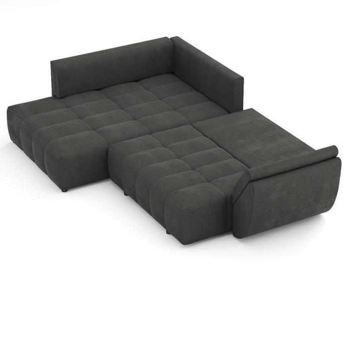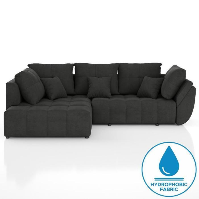 Narożnik Bono z funkcją spania został pokryty tkaniną hydrofobową. Prostotę i łatwość użytkowania gwarantuje automat ułatwiający rozkładanie i system rozkładania typu DL. Jest to szybki, prosty i wygodny sposób rozkładania. Jest jednym z najbardziej popularnych systemów rozkładania, który jest wykorzystywany w narożnikach. Po rozłożeniu to okazjonalne miejsce do spania o wymiarach 149x220 cm. Mebel posiada pojemnik, do którego można schować pościel, dodatkowe koce czy też poduszki. W siedzisku zastosowano sprężynę falistą, która dostosowuje się do ciężaru i kształtu ciała, zapewniając tym samym wysoki komfort siedzenia. Ten niepowtarzalny mebel wypoczynkowy stworzono z myślą o funkcjonalności i eleganckim wyglądzie. Narożnik dostępny w wersji uniwersalnej.
