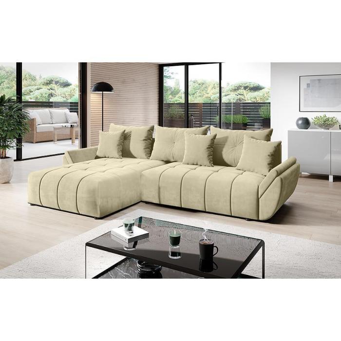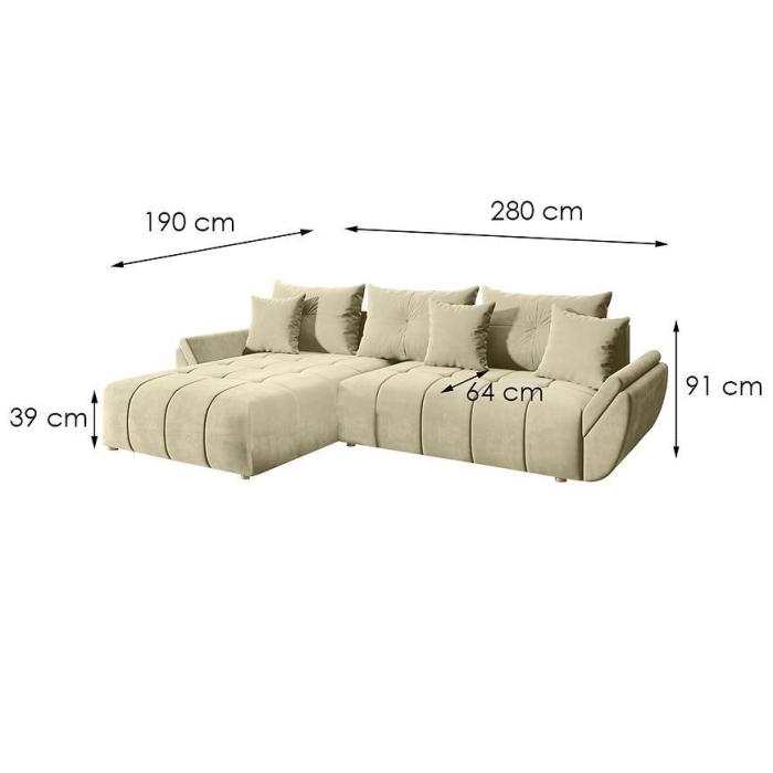 Narożnik Bono to elegancja, wygoda i funkcjonalność. Narożnik rozkładany to mebel idealny dla rodzin, które cenią sobie wspólny wypoczynek na sofie. Nowoczesny narożnik z funkcją spania wyposażony w sprężyny faliste oraz wygodne oparcie zapewni wysoki komfort nawet najbardziej wymagającym miłośnikom wielogodzinnych drzemek. Poduszki to dodatkowy komfort podczas wypoczynku lub oglądania telewizji. Kanapa narożna z pojemnikiem to idealne rozwiązanie, które świetnie sprawdzi się w każdym domu. Narożnik tapicerowany możesz ustawić w salonie lub innym pomieszczeniu. Meble wypoczynkowe wyposażone w funkcję spania to doskonały wybór na długie lata.