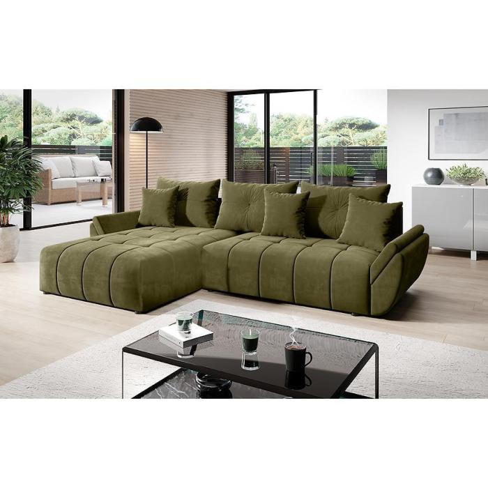 Narożnik Bono to elegancja, wygoda i funkcjonalność. Narożnik rozkładany to mebel idealny dla rodzin, które cenią sobie wspólny wypoczynek na sofie. Nowoczesny narożnik z funkcją spania wyposażony w sprężyny faliste oraz wygodne oparcie zapewni wysoki komfort nawet najbardziej wymagającym miłośnikom wielogodzinnych drzemek. Poduszki to dodatkowy komfort podczas wypoczynku lub oglądania telewizji. Kanapa narożna z pojemnikiem to idealne rozwiązanie, które świetnie sprawdzi się w każdym domu. Narożnik tapicerowany możesz ustawić w salonie lub innym pomieszczeniu. Meble wypoczynkowe wyposażone w funkcję spania to doskonały wybór na długie lata.