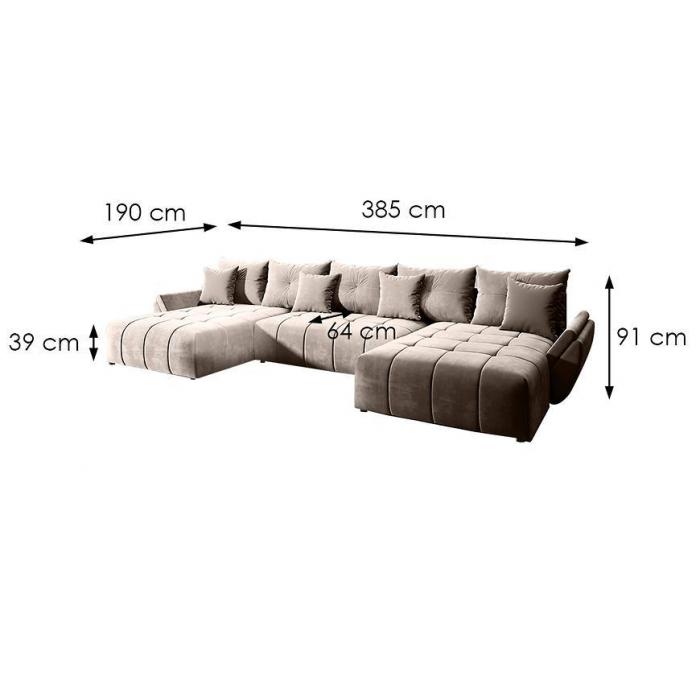 Narożnik Bono New U Vogue z funkcja spania został pokryty tkaniną . Prostotę i łatwość użytkowania gwarantuje automat ułatwiający rozkładanie i system rozkładania typu DL. Jest to szybki, prosty i wygodny sposób rozkładania. Jest jednym z najbardziej popularnych systemów rozkładania, który jest wykorzystywany w narożnikach. Po rozłożeniu to okazjonalne miejsce do spania o wymiarach 149x330 cm. Mebel posiada pojemnik, do którego można schować pościel, dodatkowe koce czy też poduszki. W siedzisku zastosowano sprężynę falistą, która dostosowuje się do ciężaru i kształtu ciała, zapewniając tym samym wysoki komfort siedzenia. Ten niepowtarzalny mebel wypoczynkowy stworzono z myślą o funkcjonalności i eleganckim wyglądzie. Narożnik dostępny w wersji uniwersalnej.