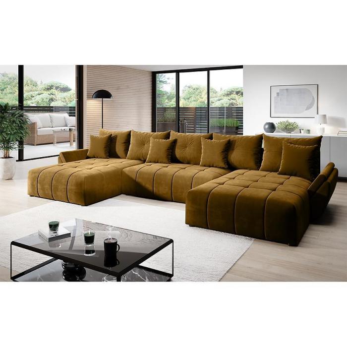 Narożnik Bono New U Vogue z funkcja spania został pokryty tkaniną . Prostotę i łatwość użytkowania gwarantuje automat ułatwiający rozkładanie i system rozkładania typu DL. Jest to szybki, prosty i wygodny sposób rozkładania. Jest jednym z najbardziej popularnych systemów rozkładania, który jest wykorzystywany w narożnikach. Po rozłożeniu to okazjonalne miejsce do spania o wymiarach 149x330 cm. Mebel posiada pojemnik, do którego można schować pościel, dodatkowe koce czy też poduszki. W siedzisku zastosowano sprężynę falistą, która dostosowuje się do ciężaru i kształtu ciała, zapewniając tym samym wysoki komfort siedzenia. Ten niepowtarzalny mebel wypoczynkowy stworzono z myślą o funkcjonalności i eleganckim wyglądzie. Narożnik dostępny w wersji uniwersalnej.