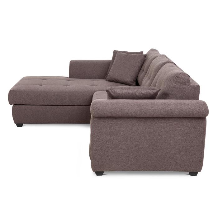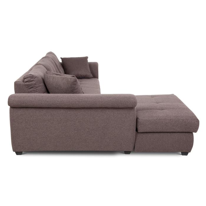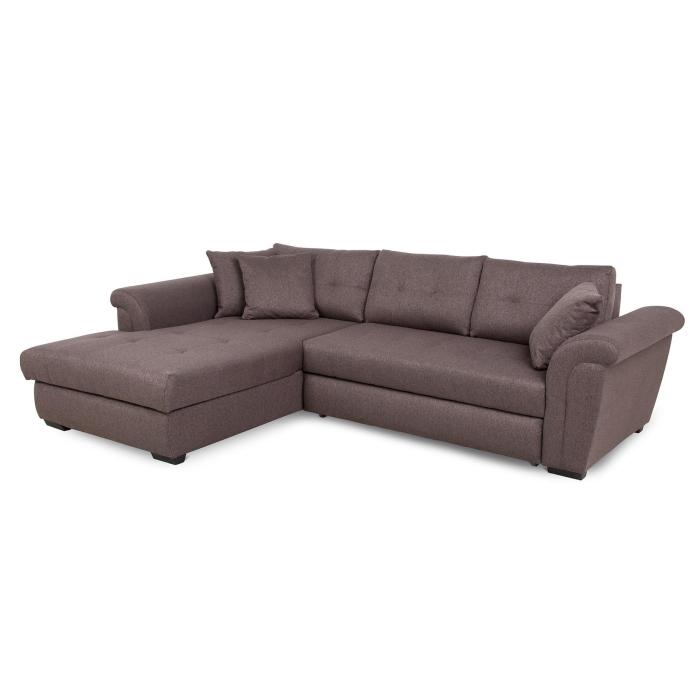 Narożnik z funkcją spania Braxton to mebel idealny dla rodzin, które cenią sobie wspólny wypoczynek na sofie. Klasyczny narożnik z funkcją spania wyposażony został w sprężyny faliste oraz piankę. Wygodne oparcie zapewniają trzy poduszki wypełnione granulatem piankowym. Narożnik Braxton dostępny jest w tkaninie Fusion 5 w kolorze czekoladowego brązu. Jako element dekoracyjny zastosowano ozdobne przeszycia i wciągi na poduszkach oparciowych. Narożnik tapicerowany świetnie sprawdzi się salonie lub innym pomieszczeniu. Meble wypoczynkowe wyposażone w funkcję spania to doskonały wybór na długie lata.