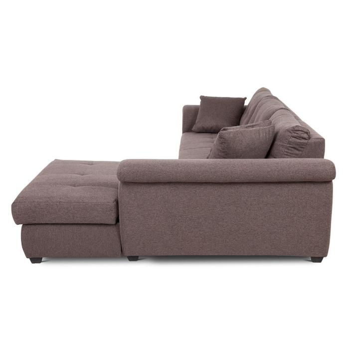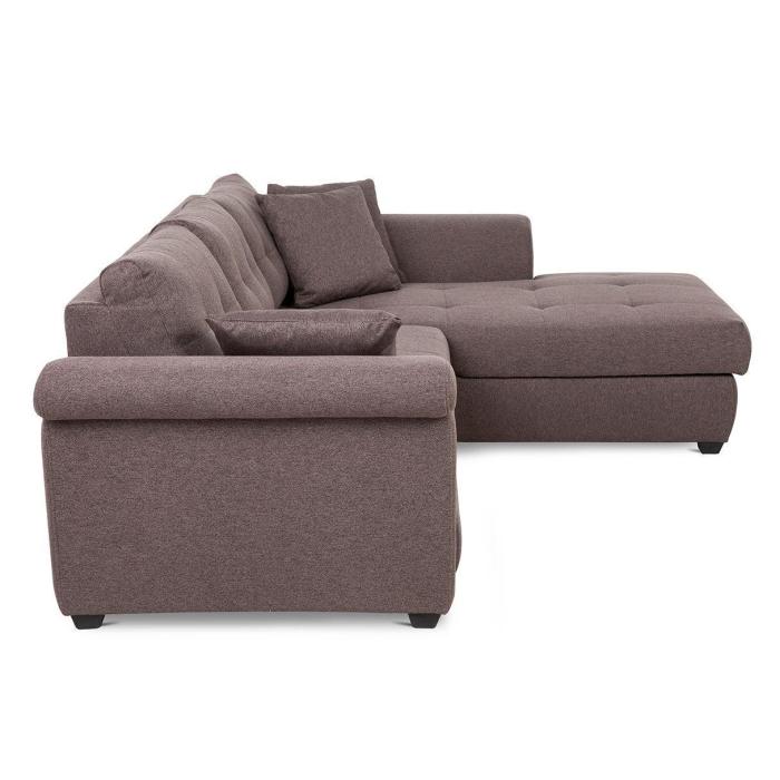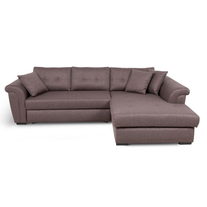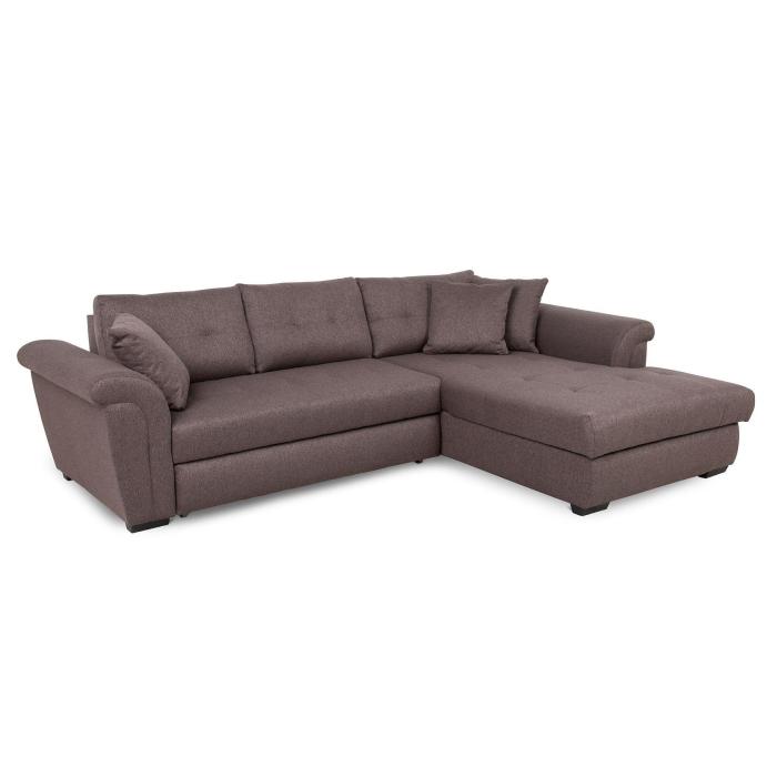 Narożnik z funkcją spania Braxton to mebel idealny dla rodzin, które cenią sobie wspólny wypoczynek na sofie. Klasyczny narożnik z funkcją spania wyposażony został w sprężyny faliste oraz piankę. Wygodne oparcie zapewniają trzy poduszki wypełnione granulatem piankowym. Narożnik Braxton dostępny jest w tkaninie Fusion 5 w kolorze czekoladowego brązu. Jako element dekoracyjny zastosowano ozdobne przeszycia i wciągi na poduszkach oparciowych. Narożnik tapicerowany świetnie sprawdzi się salonie lub innym pomieszczeniu. Meble wypoczynkowe wyposażone w funkcję spania to doskonały wybór na długie lata.