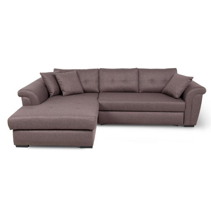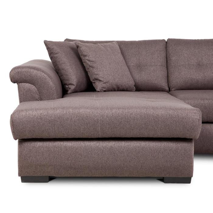 Narożnik z funkcją spania Braxton to mebel idealny dla rodzin, które cenią sobie wspólny wypoczynek na sofie. Klasyczny narożnik z funkcją spania wyposażony został w sprężyny faliste oraz piankę. Wygodne oparcie zapewniają trzy poduszki wypełnione granulatem piankowym. Narożnik Braxton dostępny jest w tkaninie Fusion 5 w kolorze czekoladowego brązu. Jako element dekoracyjny zastosowano ozdobne przeszycia i wciągi na poduszkach oparciowych. Narożnik tapicerowany świetnie sprawdzi się salonie lub innym pomieszczeniu. Meble wypoczynkowe wyposażone w funkcję spania to doskonały wybór na długie lata.