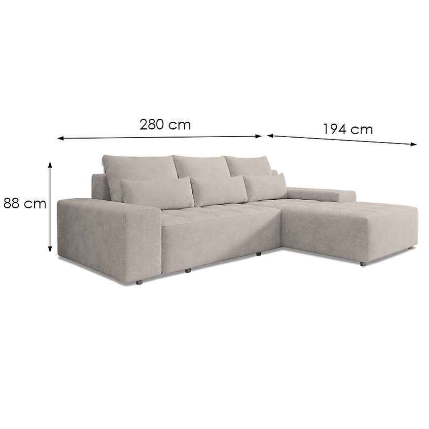 Narożnik z funkcją spania Canada Perfect Harmony w kolorze beżowym to propozycja dla osób, które szukają dużego, wygodnego i estetycznego narożnika tapicerowanego do codziennego użytkowania. Model o wymiarach 280 cm szerokości, 194 cm głębokości i 88 cm wysokości idealnie wpisuje się w kategorię narożników średnich, oferując optymalny balans pomiędzy przestrzenią wypoczynkową a ergonomią wnętrza. Dzięki uniwersalnej orientacji narożnik można dopasować do różnych układów pomieszczeń, co czyni go praktycznym wyborem zarówno do przestronnych salonów, jak i mieszkań w zabudowie blokowej.