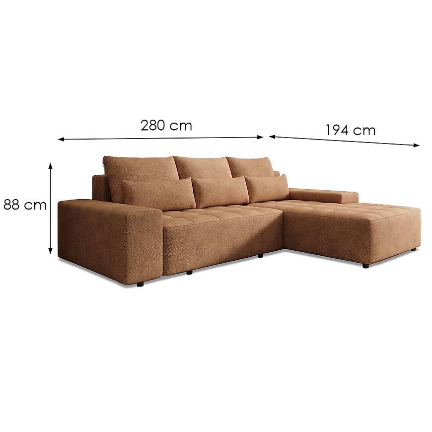 Narożnik z funkcją spania Canada Perfect Harmony w kolorze miodowym to propozycja dla osób, które szukają dużego, wygodnego i estetycznego narożnika tapicerowanego do codziennego użytkowania. Model o wymiarach 280 cm szerokości, 194 cm głębokości i 88 cm wysokości idealnie wpisuje się w kategorię narożników średnich, oferując optymalny balans pomiędzy przestrzenią wypoczynkową a ergonomią wnętrza. Dzięki uniwersalnej orientacji narożnik można dopasować do różnych układów pomieszczeń, co czyni go praktycznym wyborem zarówno do przestronnych salonów, jak i mieszkań w zabudowie blokowej.