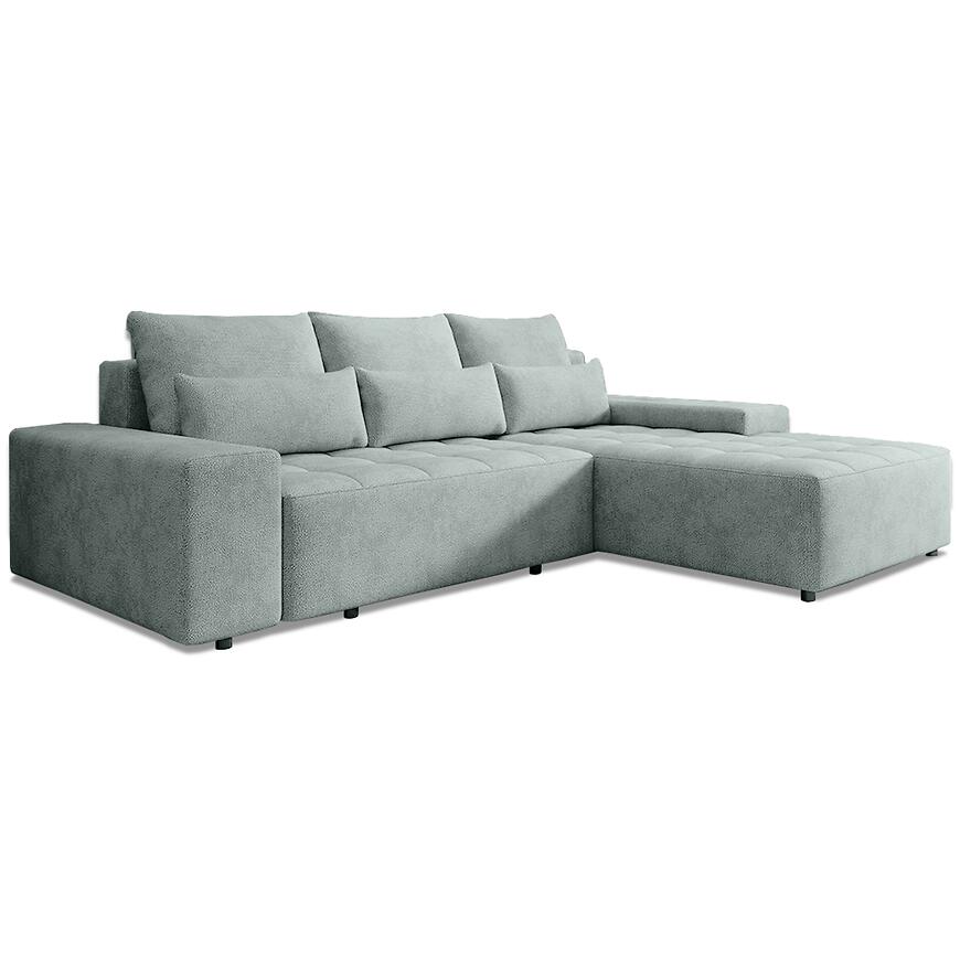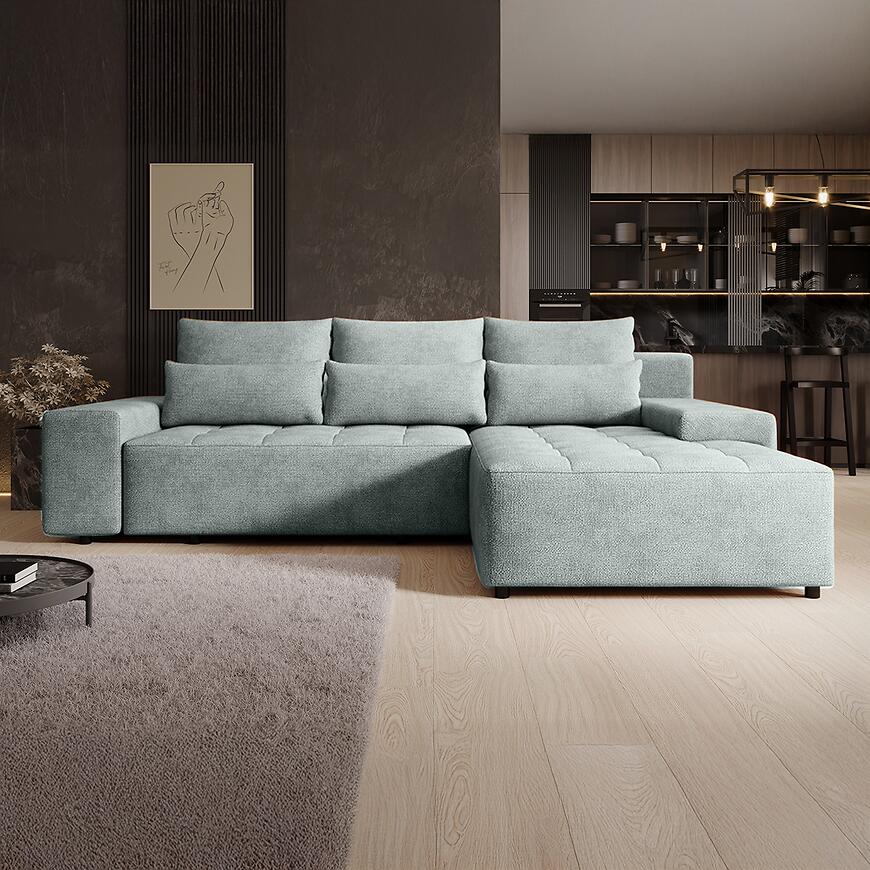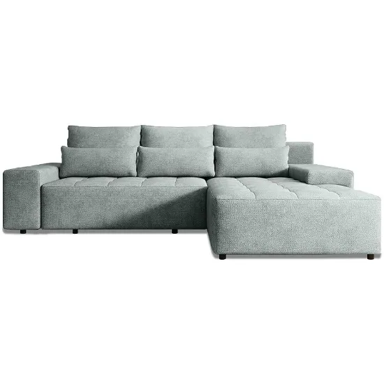 Wbudowany schowek na pościel to praktyczny element, który podnosi funkcjonalność narożnika Canada Perfect Harmony. Jeden pojemnik na pościel pozwala na wygodne przechowywanie kołder, poduszek lub dodatkowych tekstyliów, pomagając utrzymać porządek w salonie. Tapicerka wykonana z trwałej tkaniny jest przyjemna w dotyku i dobrze sprawdza się w codziennym użytkowaniu, zachowując estetyczny wygląd przez długi czas. Dzięki neutralnemu charakterowi tkaniny narożnik łatwo dopasować do różnych stylów aranżacyjnych.