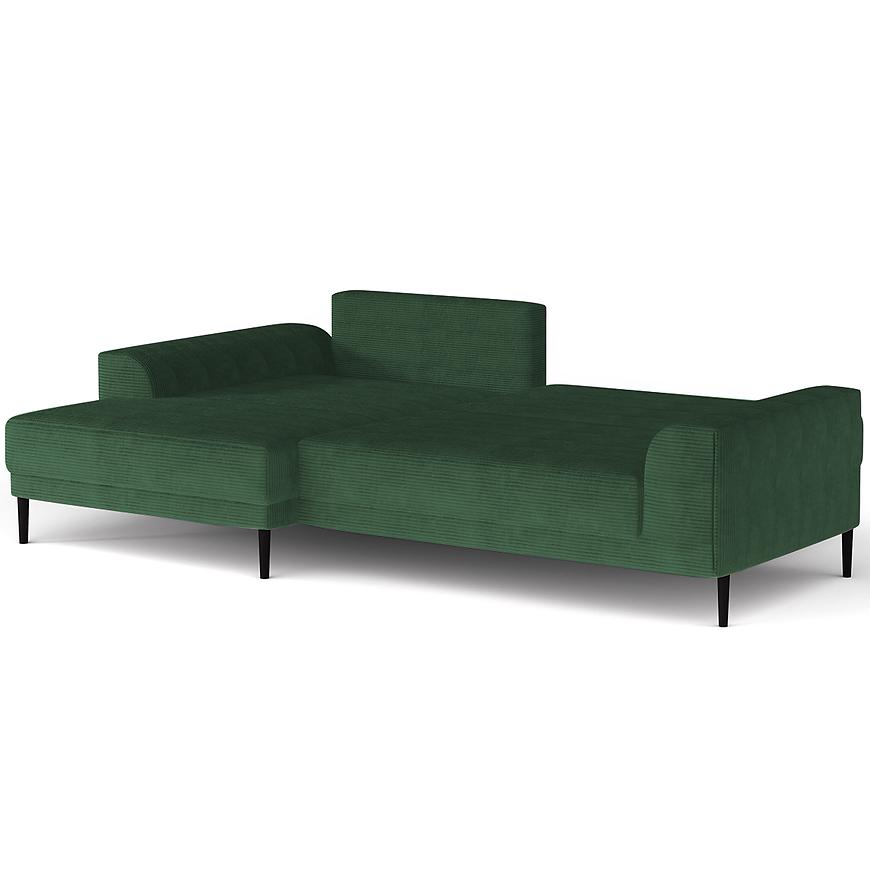 Wbudowany pojemnik na pościel umożliwia praktyczne przechowywanie kołdry, poduszek czy koca. Dopełnieniem całości są czarne, solidne nogi, które nadają narożnikowi nowoczesnego charakteru, oraz poduszki w komplecie, zwiększające komfort wypoczynku.
