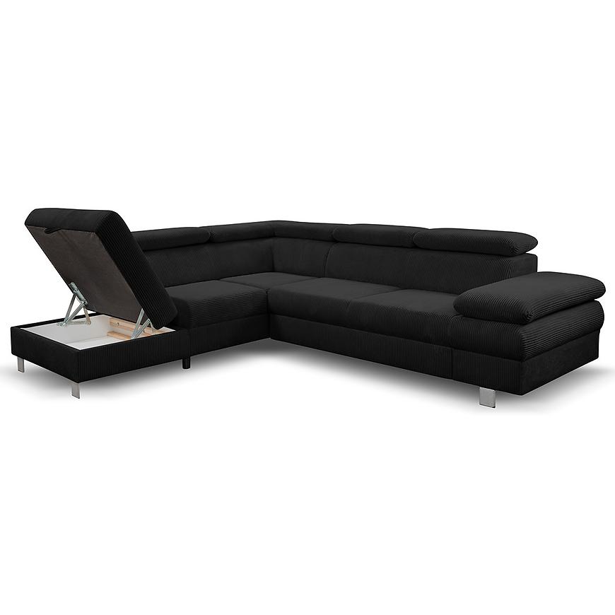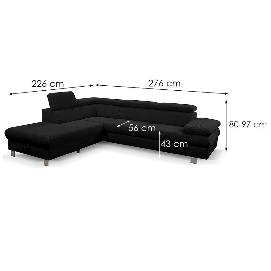 Narożnik Conti posiada także funkcję spania, sposób rozkładania - delfin. Po rozłożeniu to okazjonalne miejsce do spania. Dodatkowym atutem jest schowek na pościel, który umożliwia przechowywanie pościeli czy dodatkowych poduszek w dyskretny sposób, oszczędzając przestrzeń w pomieszczeniu. Regulowany zagłówek oraz regulowane podłokietniki to kolejne elementy, które podnoszą komfort użytkowania tego narożnika. Dzięki nim można dostosować mebel do własnych preferencji i potrzeb, zapewniając sobie idealne wsparcie podczas wypoczynku. Narożnik Conti posiada także solidne nóżki w kolorze satyna, które nadają mu elegancki wygląd i stabilność.