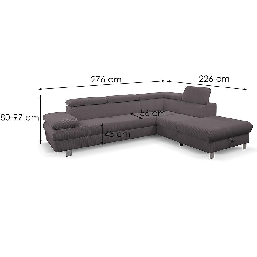 Narożnik Conti posiada także funkcję spania, sposób rozkładania - delfin. Po rozłożeniu to okazjonalne miejsce do spania. Dodatkowym atutem jest schowek na pościel, który umożliwia przechowywanie pościeli czy dodatkowych poduszek w dyskretny sposób, oszczędzając przestrzeń w pomieszczeniu. Regulowany zagłówek oraz regulowane podłokietniki to kolejne elementy, które podnoszą komfort użytkowania tego narożnika. Dzięki nim można dostosować mebel do własnych preferencji i potrzeb, zapewniając sobie idealne wsparcie podczas wypoczynku. Narożnik Conti posiada także solidne nóżki w kolorze satyna, które nadają mu elegancki wygląd i stabilność.