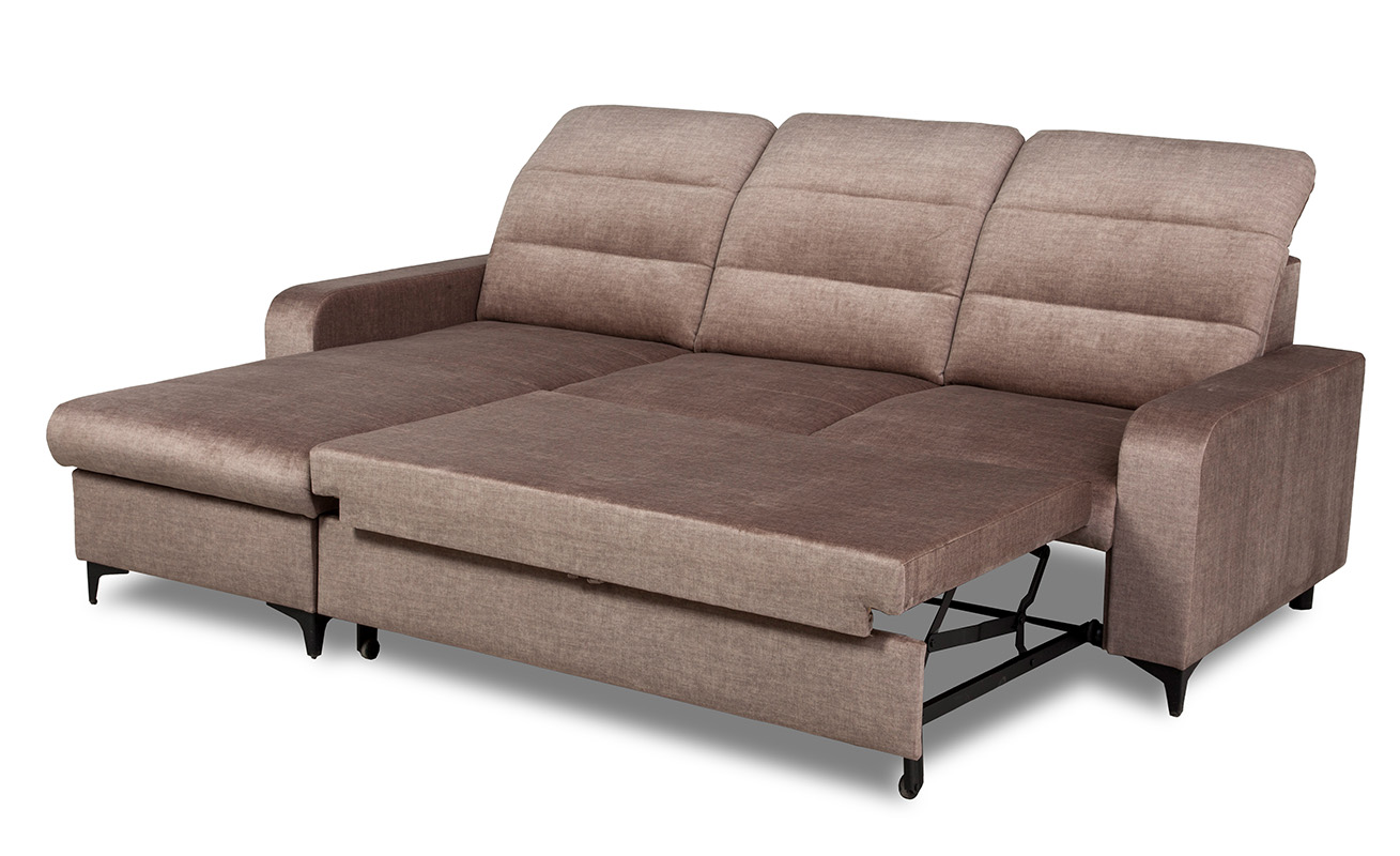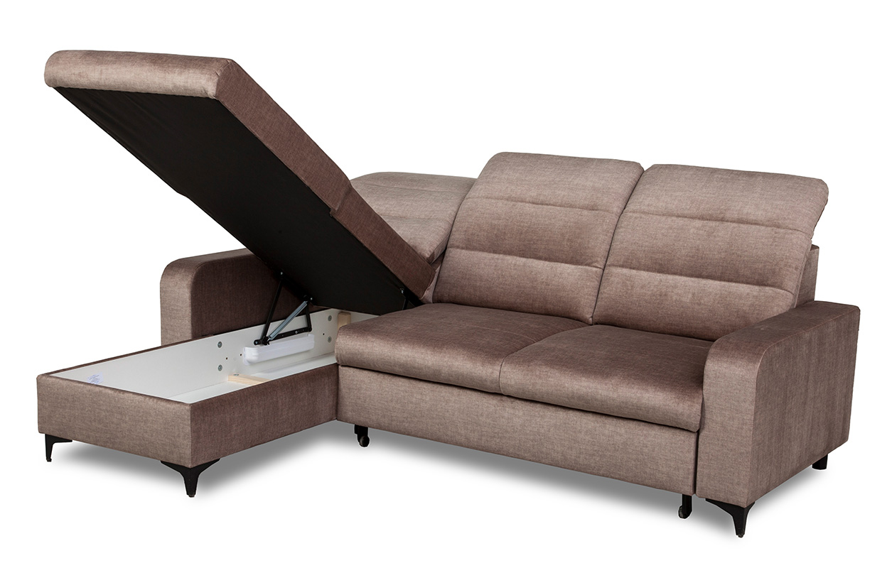Narożnik Coral to nie tylko stylowy mebel, ale także funkcjonalne rozwiązanie do codziennego użytku. Wyposażony w mechanizm rozkładania typu "wózek", pozwala szybko i łatwo przekształcić go w wygodne łóżko o powierzchni 133x202 cm. Dodatkowym atutem jest pojemnik na pościel, który zapewnia miejsce do przechowywania kołder i poduszek.