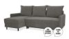 Narożnik Cord jest uniwersalny i dostępny w opcji prawostronnej lub lewostronnej, co pozwala na łatwe dopasowanie go do każdej przestrzeni. Stożkowe, drewniane nogi w kolorze czarnym podkreślają nowoczesny design mebla i dodają mu lekkości, jednocześnie zapewniając stabilność i trwałość.