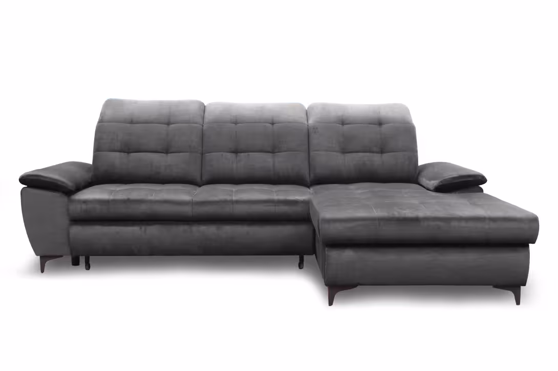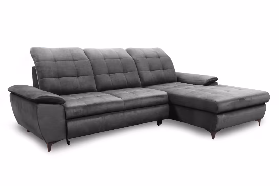 Narożnik Crystal grafitowy z funkcją spania, pojemnikiem na pościel i regulowanymi zagłówkami to propozycja dla osób, które oczekują od mebla czegoś więcej niż tylko miejsca do siedzenia. Stabilna konstrukcja, system Delfin oraz przemyślane detale sprawiają, że sprawdzi się zarówno jako narożnik do codziennego wypoczynku, jak i dodatkowe łóżko w salonie.