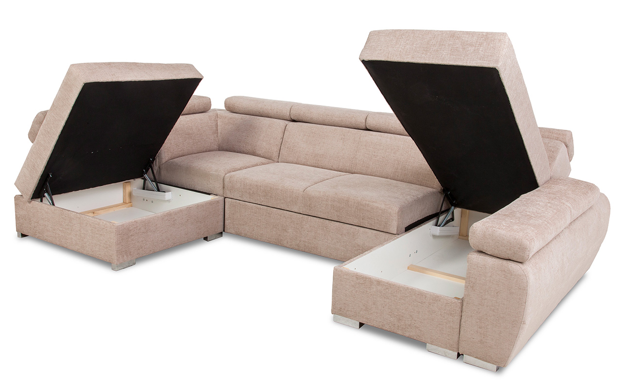 Dodatkowym atutem Emporio są dwa pojemniki na pościel, które oferują mnóstwo miejsca na przechowywanie kołder, poduszek i innych tekstyliów. Dzięki temu, wszystko co potrzebne do spania zawsze jest pod ręką, a przestrzeń w salonie pozostaje uporządkowana i schludna.