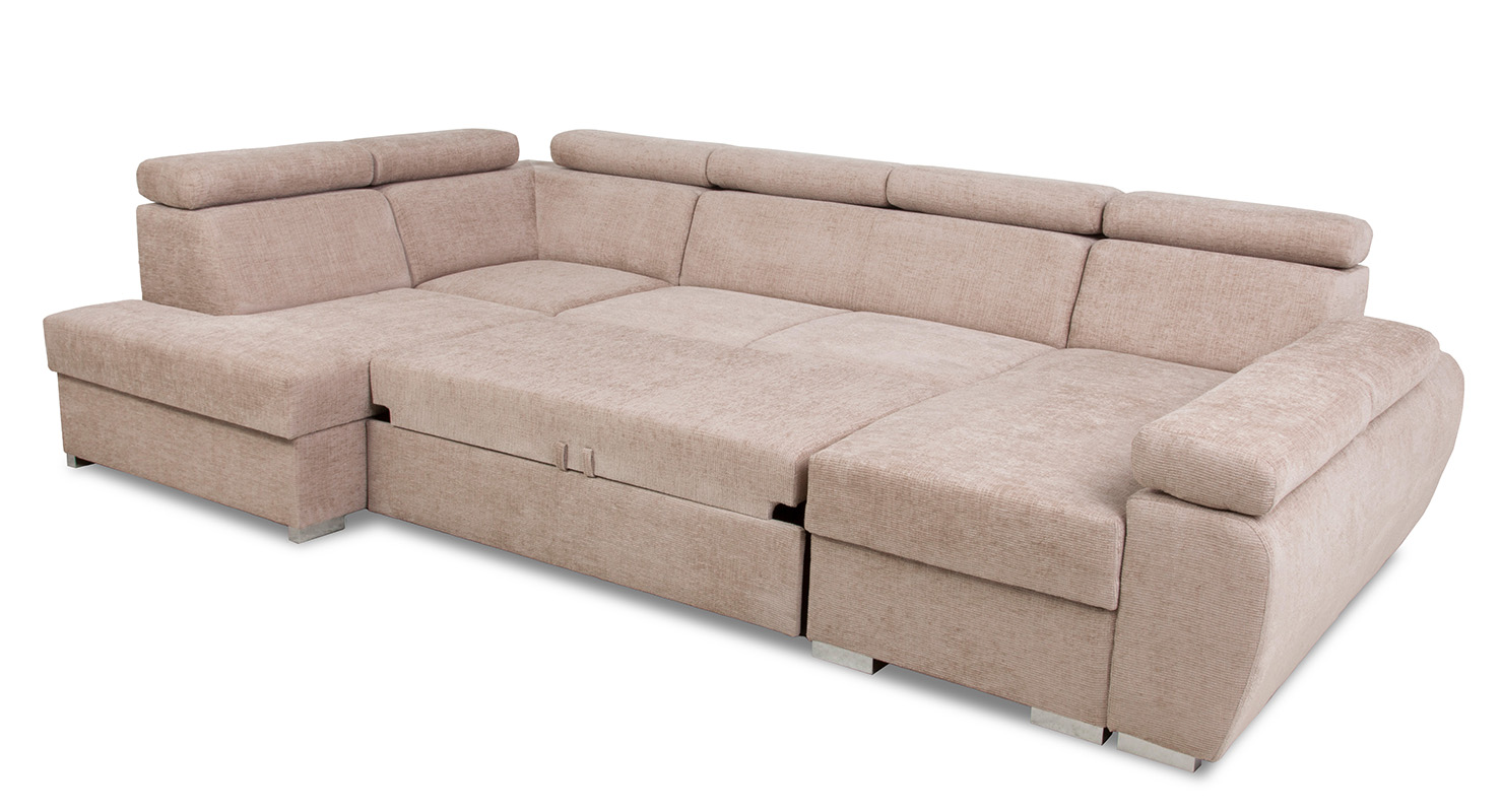 Emporio to narożnik, który w prosty sposób można przekształcić w wygodne łóżko. Dzięki mechanizmowi ułatwiającemu rozkładanie, przemiana w miejsce do spania jest szybka i bezproblemowa. Po rozłożeniu narożnika uzyskujemy przestronną powierzchnię do spania o wymiarach 130x260 cm, która z powodzeniem zastąpi tradycyjne łóżko. Rozkładanie narożnika Emporio jest niezwykle proste dzięki metalowemu wózkowi, który wyjeżdża z dolnej części mebla. Mechanizm ten nie tylko ułatwia transformację narożnika, ale także zapewnia stabilność i trwałość konstrukcji.